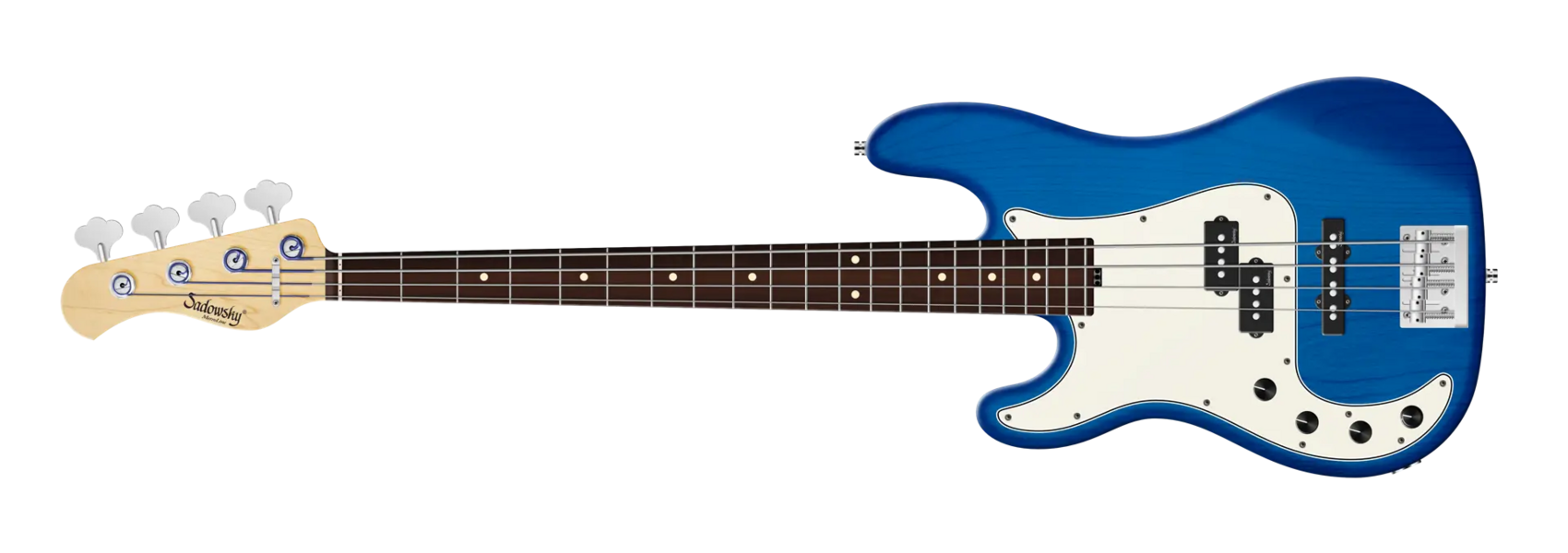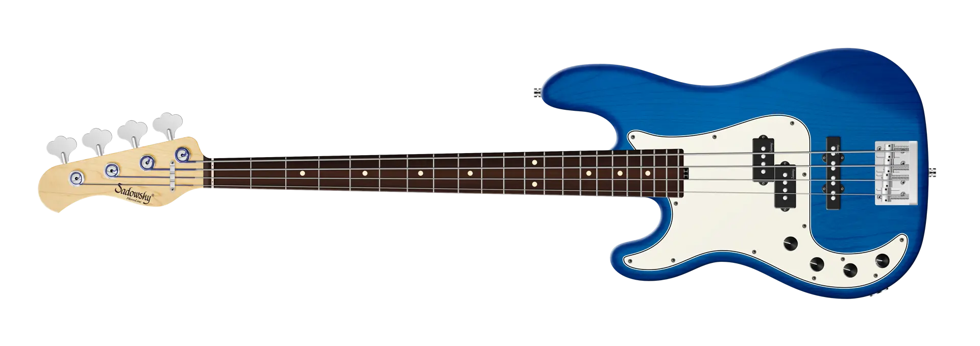 Roger Sadowsky's goal was always to further improve an already very successful bass design by making a number of detailed improvements. Along with the electronics, which he developed by himself, he succeeded to raise the well-known P/J bass sound to a new level, so today you can speak of a typical Sadowsky tone: Never harsh or shrill sounding, with strong, powerful but never muddy bass, with present, but not too aggressive mids, and a sweet and airy treble range. This modern bass sound can also be found in the Sadowsky MetroLine 21-Fret Hybrid P/J line of basses. This 4-string left-hand bass, seen here in an Ocean Blue Transparent Satin finish, features a chambered P-Style body made of American Red Alder. The neck is made of Maple and features a Morado (Pau Ferro) fingerboard. Special features of this bass include Sadowsky P and J pickups, active electronics with true bypass, Vintage Tone Control, treble and bass boost. This bass also features light open gear Sadowsky tuners and the Sadowsky Quick String Release Bridge. Sadowsky MetroLine 21-Fret Hybrid P/J basses are made exclusively in Germany. The weight of this bass is never more than 8.9 lbs (4.0 kg). A good choice for players who want a lightweight bass that offers a modern bass sound.
