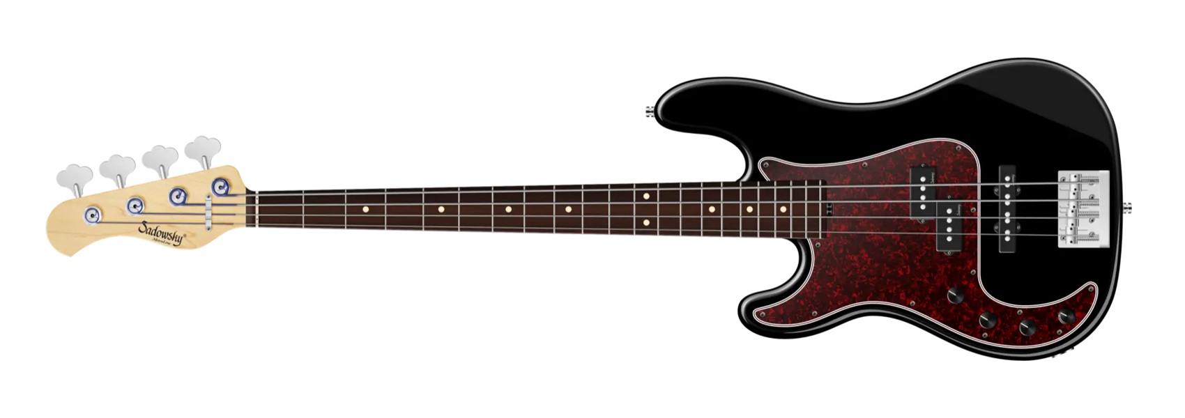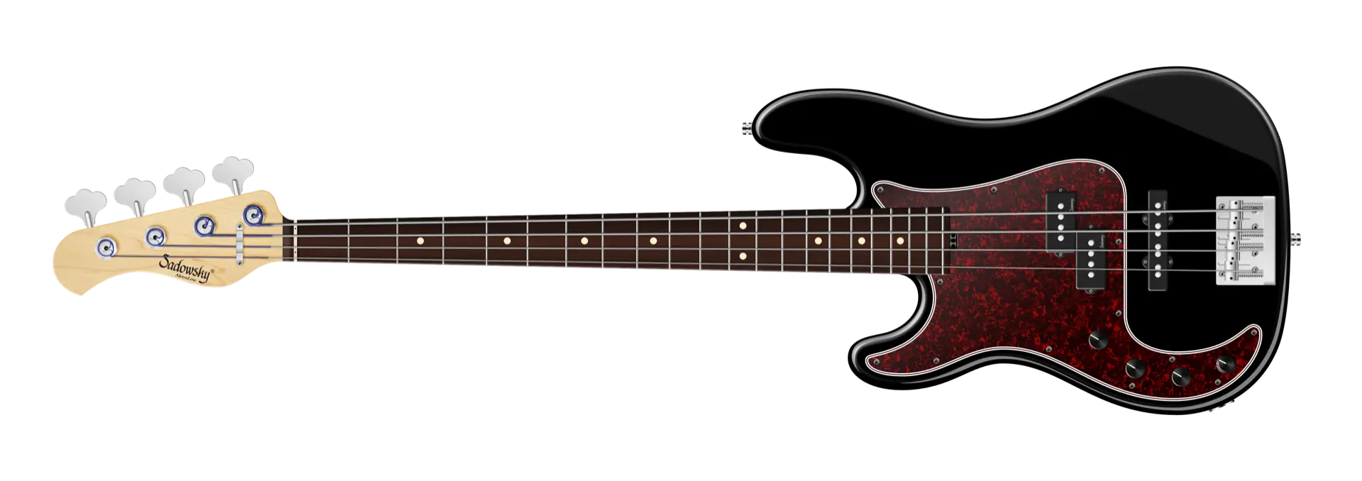 Roger Sadowsky's goal was always to further improve an already very successful bass design by making a number of detailed improvements. Along with the electronics, which he developed by himself, he succeeded to raise the well-known P/J bass sound to a new level, so today you can speak of a typical Sadowsky tone: Never harsh or shrill sounding, with strong, powerful but never muddy bass, with present, but not too aggressive mids, and a sweet and airy treble range. This modern bass sound can also be found in the Sadowsky MetroLine 21-Fret Hybrid P/J line of basses. This 4-string left-hand bass, seen here in a Solid Black High Polish finish, features a chambered P-Style body made of American Red Alder. The neck is made of Maple and features a Morado (Pau Ferro) fingerboard. Special features of this bass include Sadowsky P and J pickups, active electronics with true bypass, Vintage Tone Control, treble and bass boost. This bass also features light open gear Sadowsky tuners and the Sadowsky Quick String Release Bridge. Sadowsky MetroLine 21-Fret Hybrid P/J basses are made exclusively in Germany. The weight of this bass is never more than 8.9 lbs (4.0 kg). A good choice for players who want a lightweight bass that offers a modern bass sound.