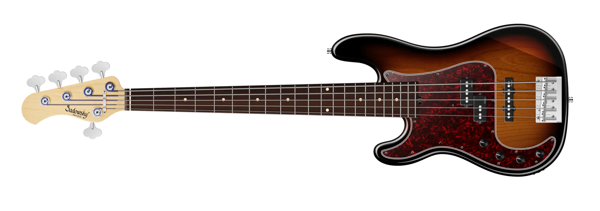 Roger Sadowsky's goal was always to further improve an already very successful bass design by making a number of detailed improvements. Along with the electronics, which he developed by himself, he succeeded to raise the well-known P/J bass sound to a new level, so today you can speak of a typical Sadowsky tone: Never harsh or shrill sounding, with strong, powerful but never muddy bass, with present, but not too aggressive mids, and a sweet and airy treble range. This modern bass sound can also be found in the Sadowsky MetroLine 21-Fret Hybrid P/J line of basses. This 5-string left-hand bass, seen here in a '59 Burst Transparent High Polish finish, features a chambered P-Style body made of American Red Alder. The neck is made of Maple and features a Morado (Pau Ferro) fingerboard. Special features of this bass include Sadowsky P and J pickups, active electronics with true bypass, Vintage Tone Control, treble and bass boost. This bass also features light open gear Sadowsky tuners and the Sadowsky Quick String Release Bridge. Sadowsky MetroLine 21-Fret Hybrid P/J basses are made exclusively in Germany. The weight of this bass is never more than 8.9 lbs (4.0 kg). A good choice for players who want a lightweight bass that offers a modern bass sound.