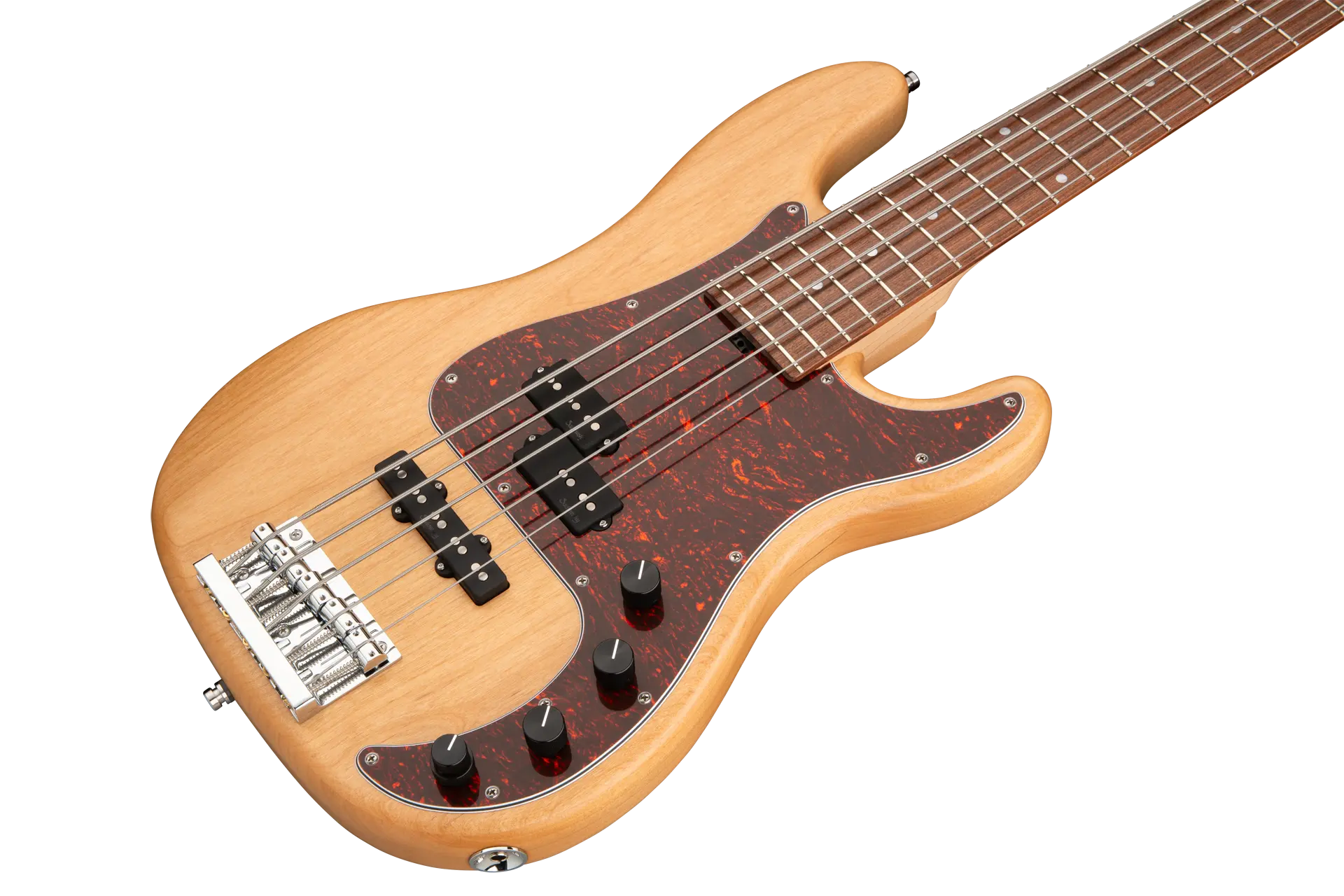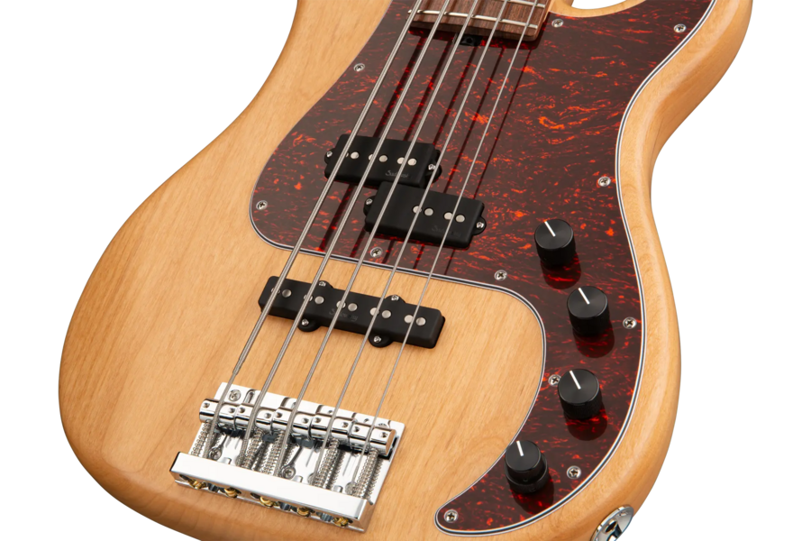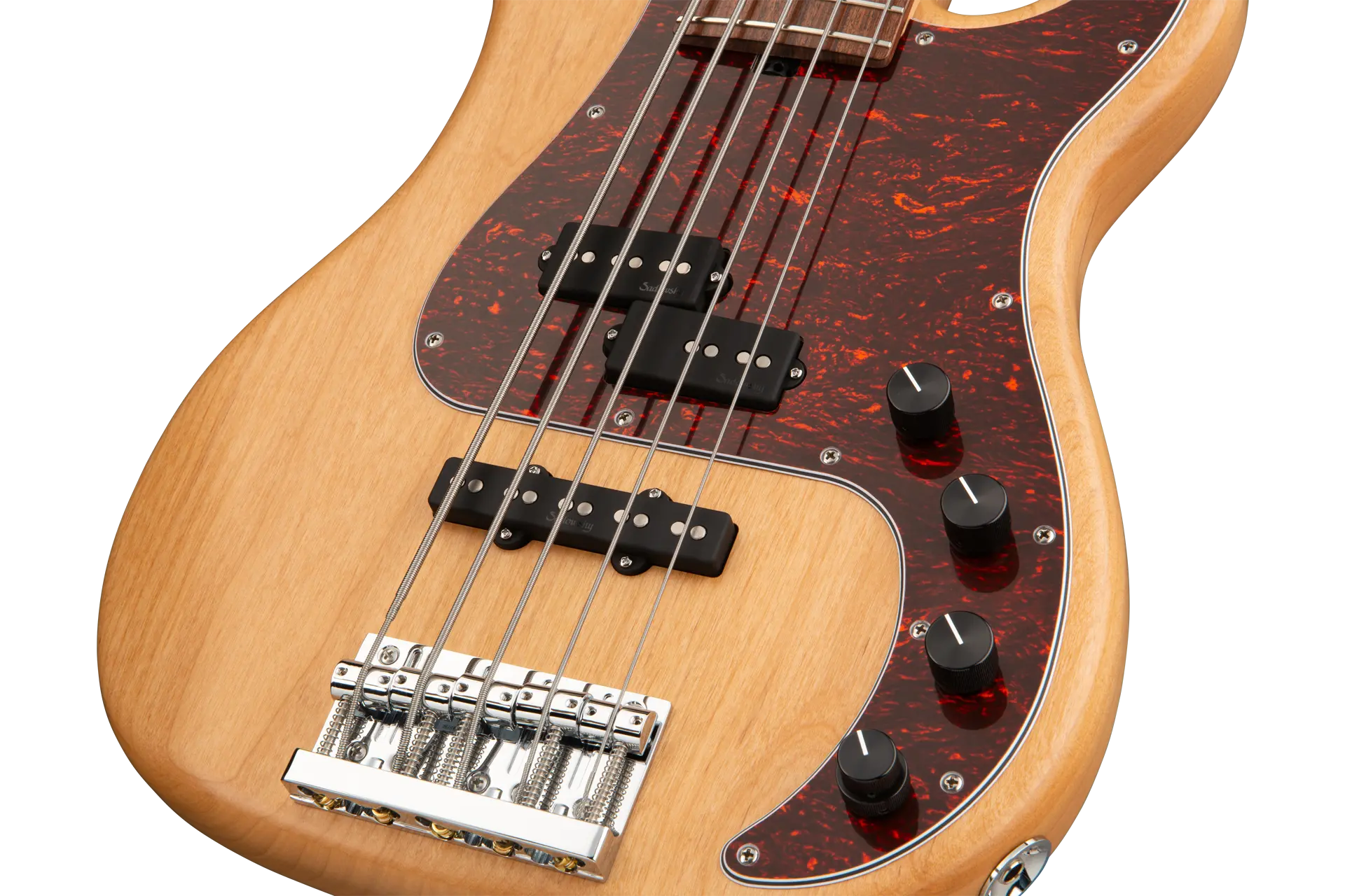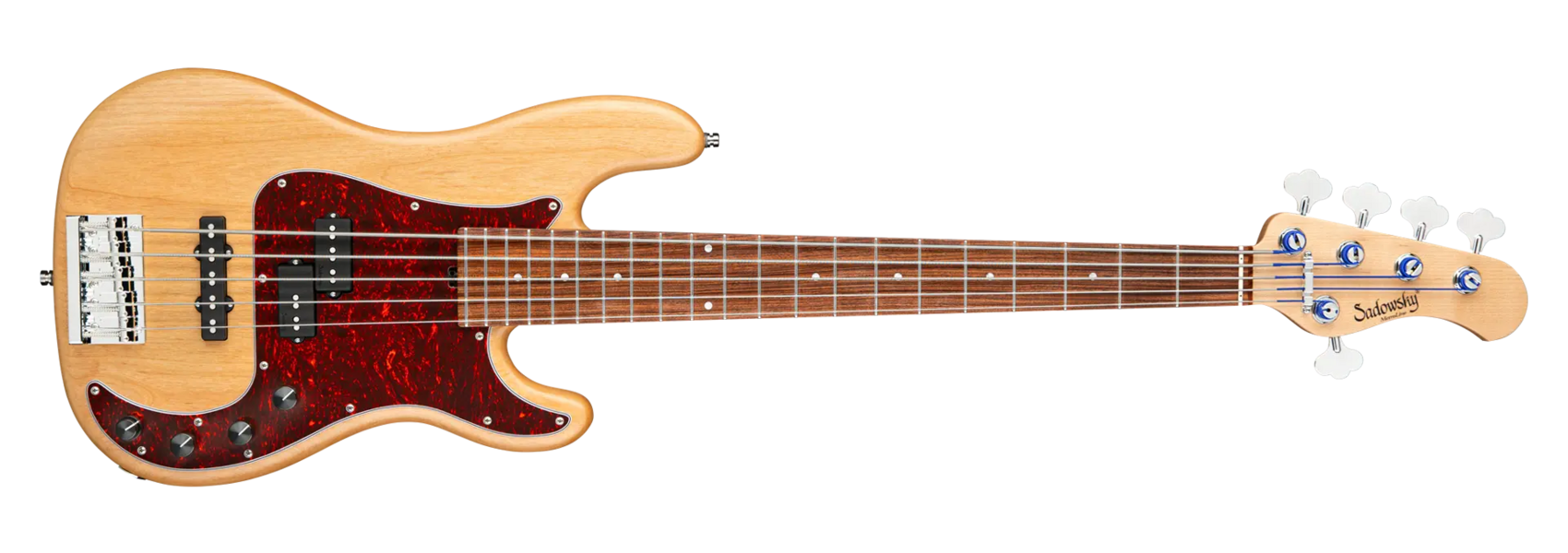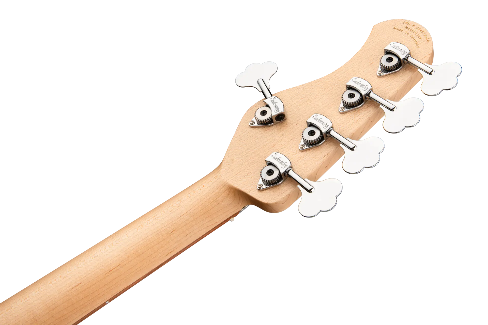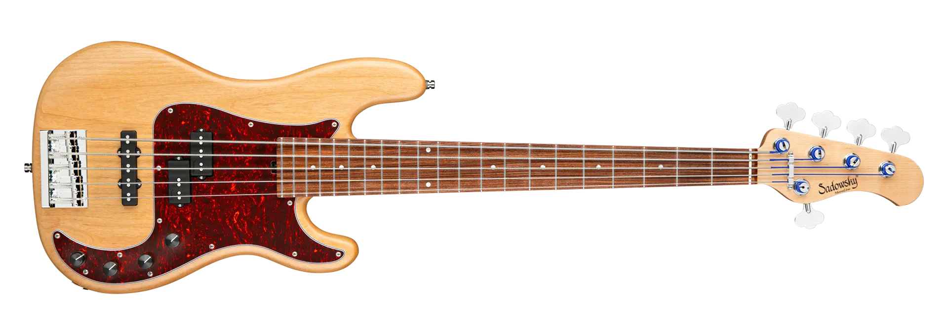 Roger Sadowsky's goal was always to further improve an already very successful bass design by making a number of detailed improvements. Along with the electronics, which he developed by himself, he succeeded to raise the well-known P/J bass sound to a new level, so today you can speak of a typical Sadowsky tone: Never harsh or shrill sounding, with strong, powerful but never muddy bass, with present, but not too aggressive mids, and a sweet and airy treble range. This modern bass sound can also be found in the Sadowsky MetroLine 21-Fret Hybrid P/J line of basses. This 5-string bass, seen here in a Natural Transparent Satin finish, features a chambered P-Style body made of American Red Alder. The neck is made of Maple and features a Morado (Pau Ferro) fingerboard. Special features of this bass include Sadowsky P and J pickups, active electronics with true bypass, Vintage Tone Control, treble and bass boost. This bass also features light open gear Sadowsky tuners and the Sadowsky Quick String Release Bridge. Sadowsky MetroLine 21-Fret Hybrid P/J basses are made exclusively in Germany. The weight of this bass is never more than 8.9 lbs (4.0 kg). A good choice for players who want a lightweight bass that offers a modern bass sound.