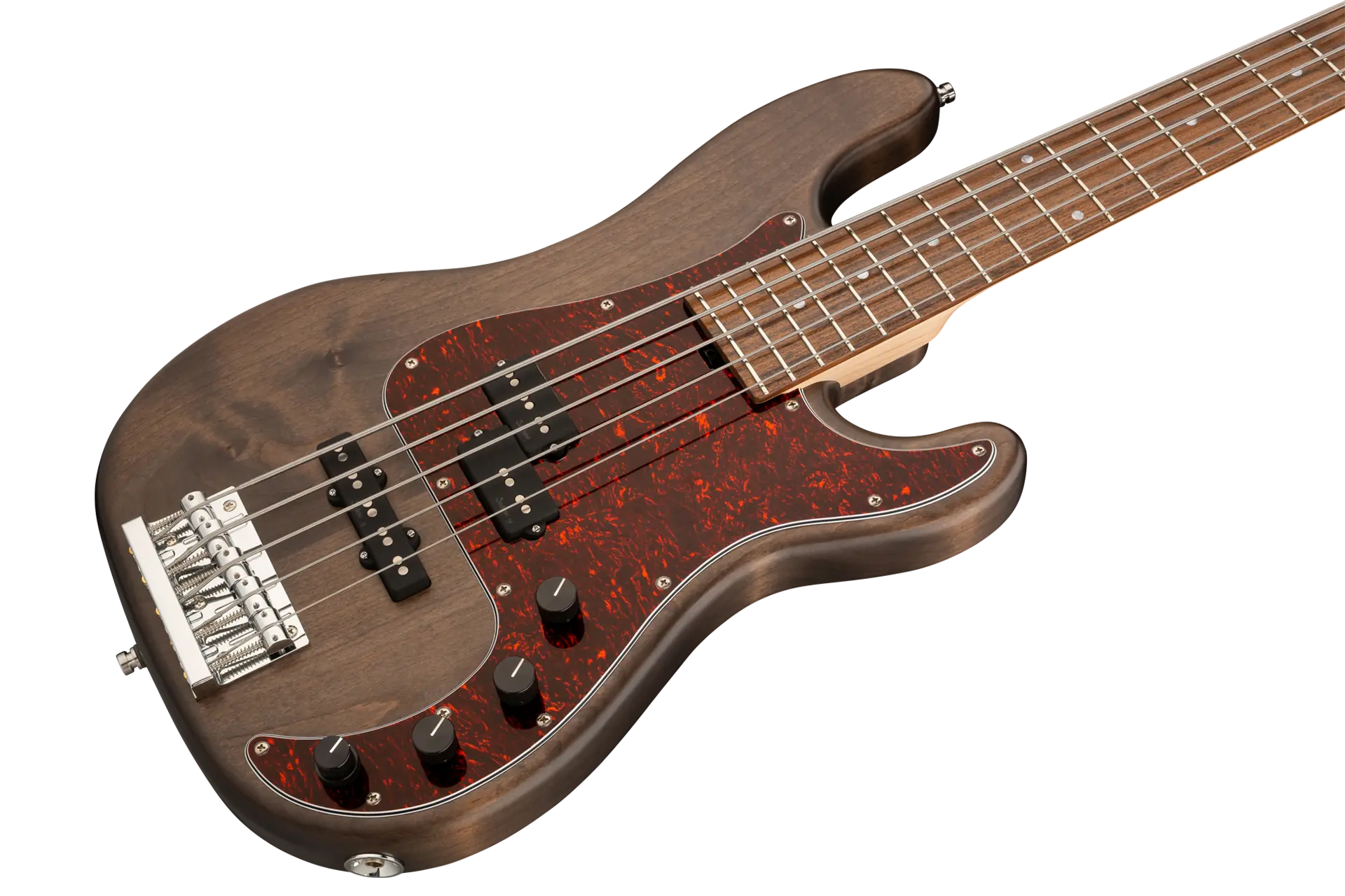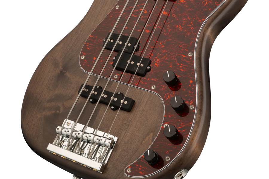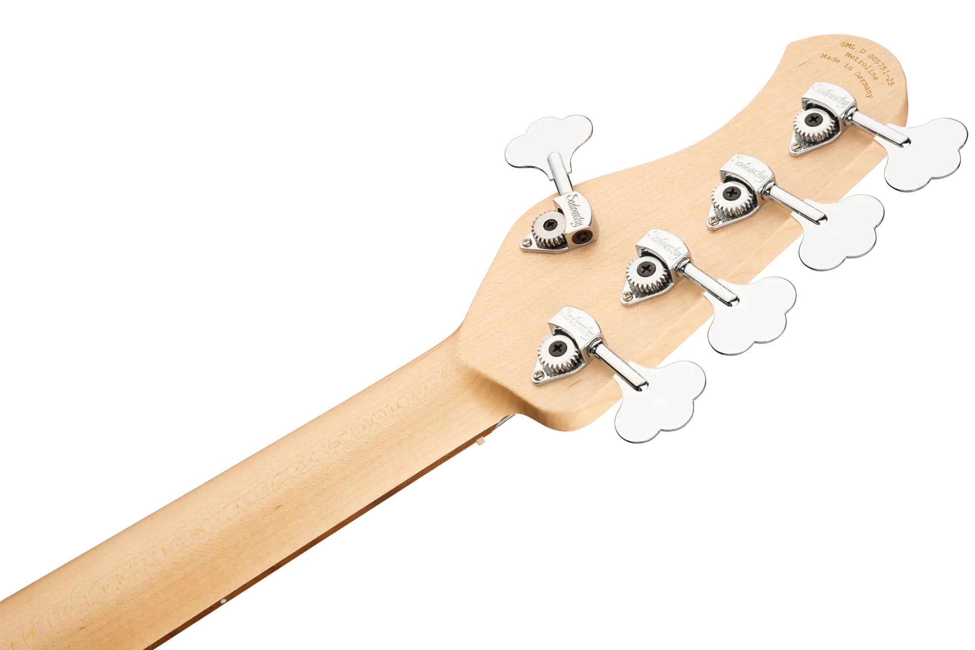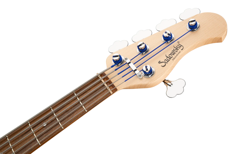 Roger Sadowsky's goal was always to further improve an already very successful bass design by making a number of detailed improvements. Along with the electronics, which he developed by himself, he succeeded to raise the well-known P/J bass sound to a new level, so today you can speak of a typical Sadowsky tone: Never harsh or shrill sounding, with strong, powerful but never muddy bass, with present, but not too aggressive mids, and a sweet and airy treble range. This modern bass sound can also be found in the Sadowsky MetroLine 21-Fret Hybrid P/J line of basses. This 5-string bass, seen here in a Nirvana Black Transparent Satin finish, features a chambered P-Style body made of American Red Alder. The neck is made of Maple and features a Morado (Pau Ferro) fingerboard. Special features of this bass include Sadowsky P and J pickups, active electronics with true bypass, Vintage Tone Control, treble and bass boost. This bass also features light open gear Sadowsky tuners and the Sadowsky Quick String Release Bridge. Sadowsky MetroLine 21-Fret Hybrid P/J basses are made exclusively in Germany. The weight of this bass is never more than 8.9 lbs (4.0 kg). A good choice for players who want a lightweight bass that offers a modern bass sound.