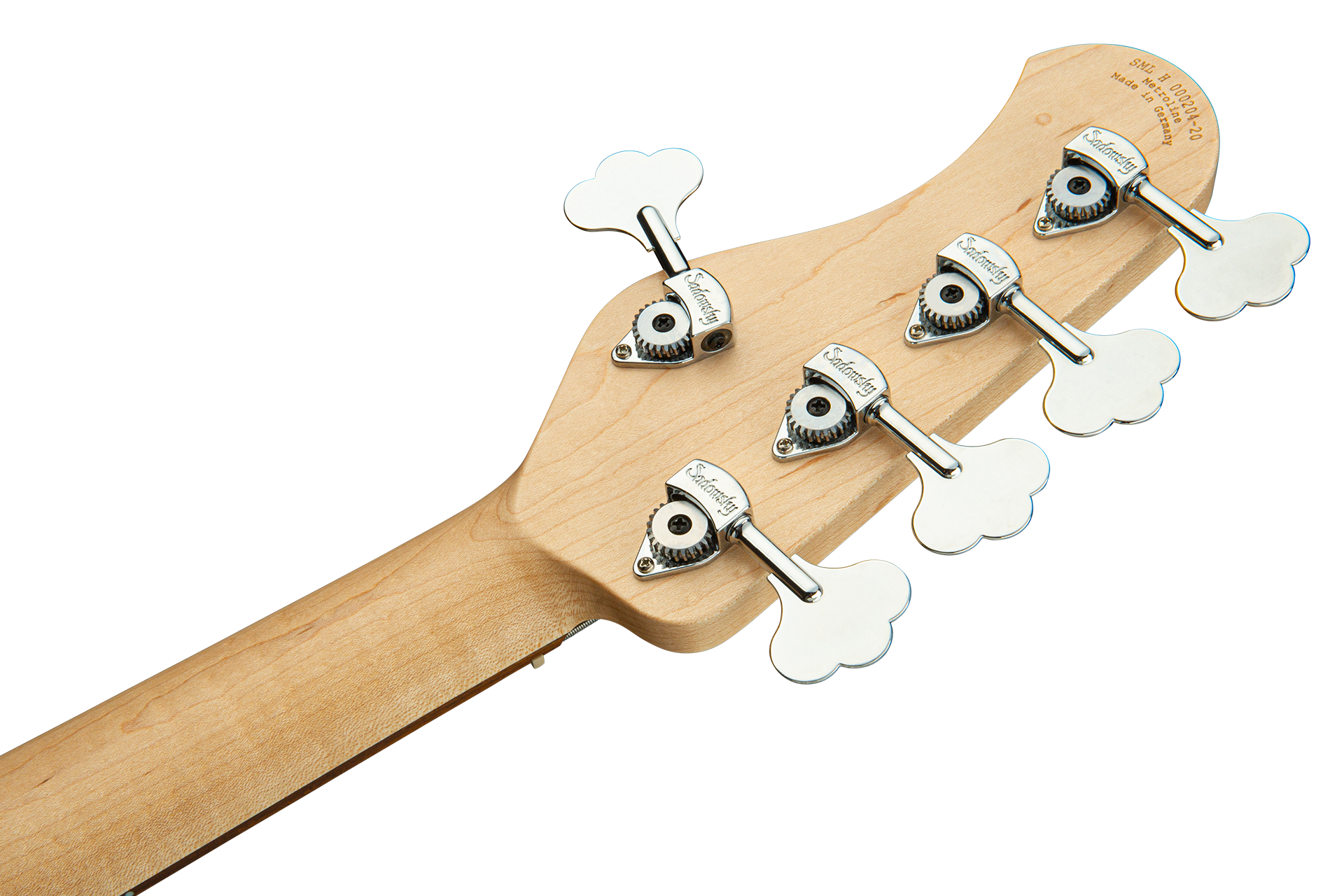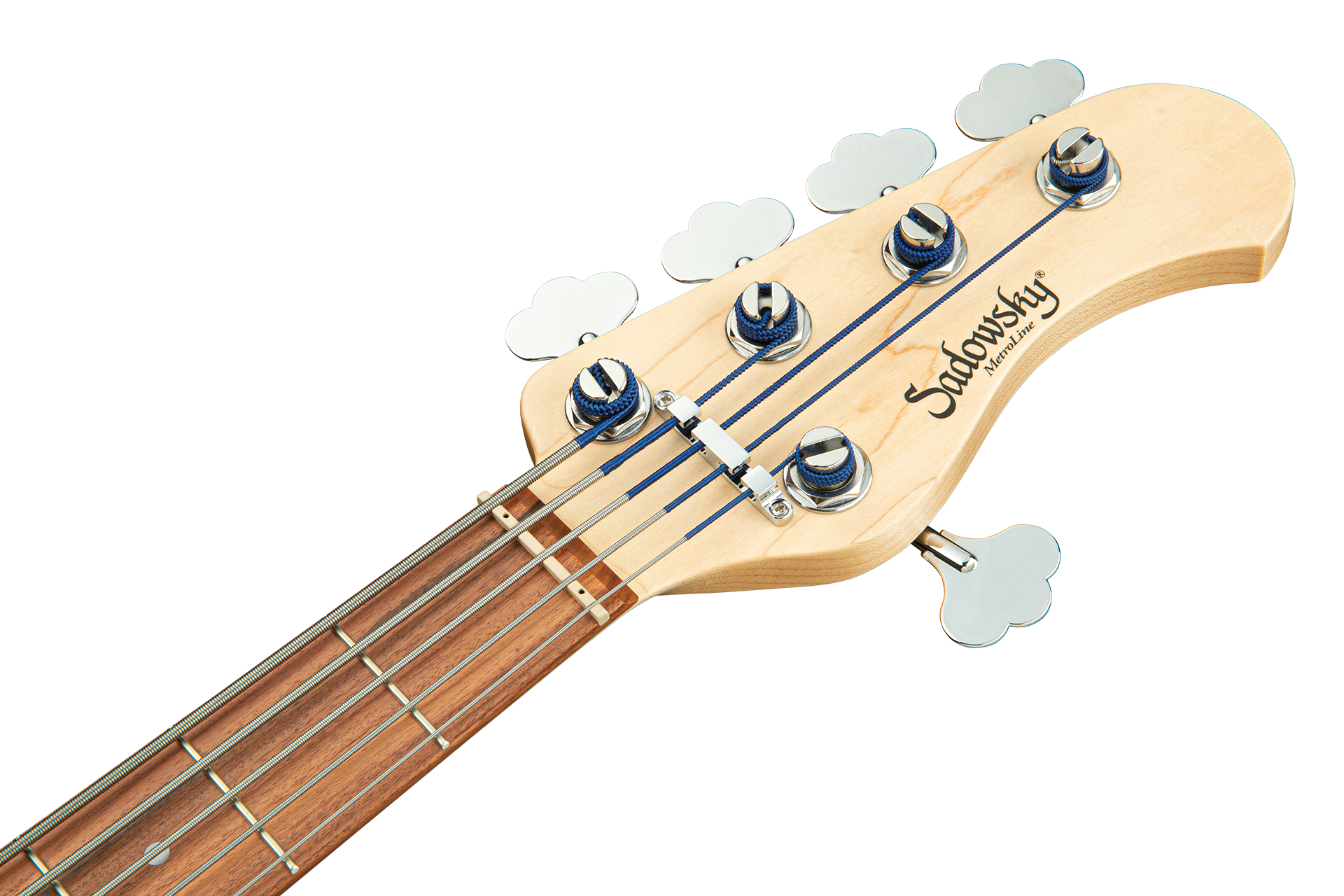 Roger Sadowsky's goal was always to further improve an already very successful bass design by making a number of detailed improvements. Along with the electronics, which he developed by himself, he succeeded to raise the well-known P/J bass sound to a new level, so today you can speak of a typical Sadowsky tone: Never harsh or shrill sounding, with strong, powerful but never muddy bass, with present, but not too aggressive mids, and a sweet and airy treble range. This modern bass sound can also be found in the Sadowsky MetroLine 21-Fret Hybrid P/J line of basses. This 5-string bass, seen here in a Solid Dark Lake Placid Blue Metallic High Polish finish, features a chambered P-Style body made of American Red Alder. The neck is made of Maple and features a Morado (Pau Ferro) fingerboard. Special features of this bass include Sadowsky P and J pickups, active electronics with true bypass, Vintage Tone Control, treble and bass boost. This bass also features light open gear Sadowsky tuners and the Sadowsky Quick String Release Bridge. Sadowsky MetroLine 21-Fret Hybrid P/J basses are made exclusively in Germany. The weight of this bass is never more than 8.9 lbs (4.0 kg). A good choice for players who want a lightweight bass that offers a modern bass sound.