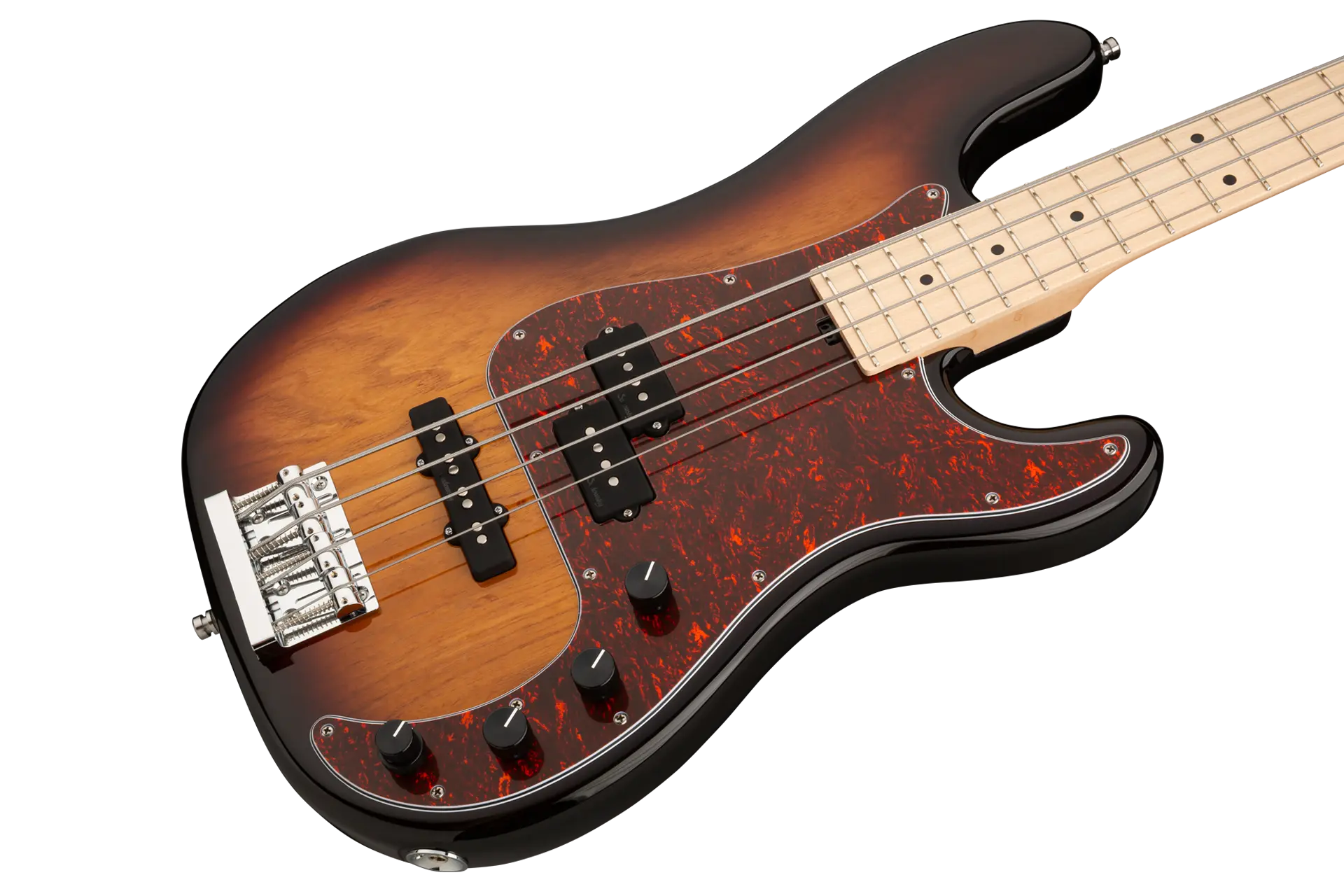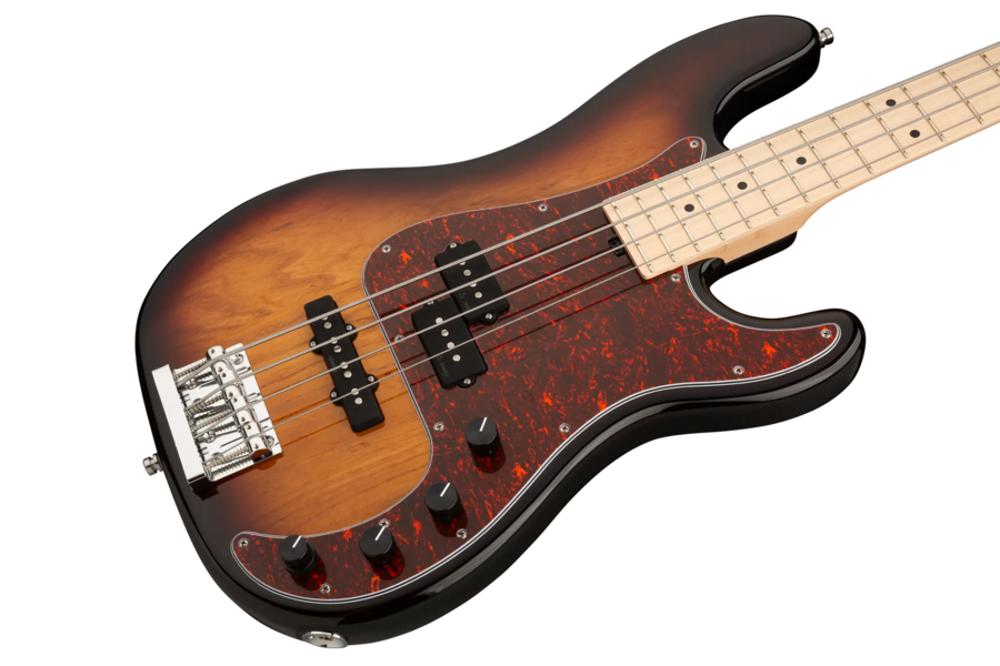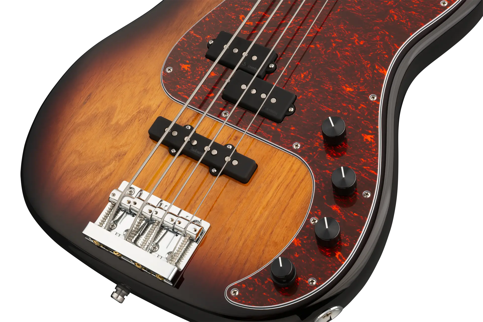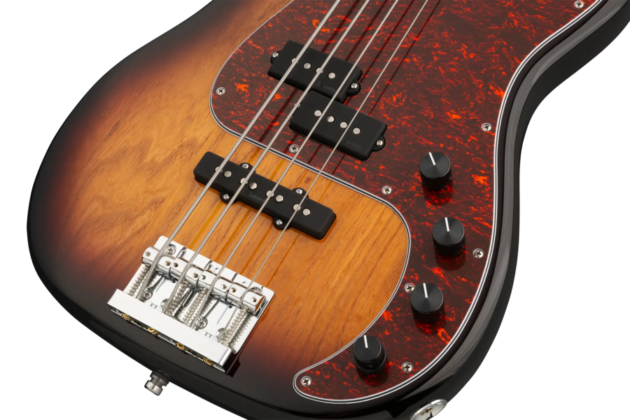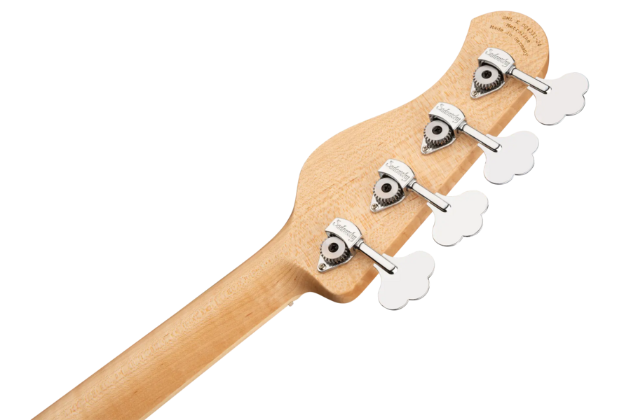 Roger Sadowsky's goal was always to further improve an already very successful bass design by making a number of detailed improvements. Along with the electronics, which he developed by himself, he succeeded to raise the well-known P/J bass sound to a new level, so today you can speak of a typical Sadowsky tone: Never harsh or shrill sounding, with strong, powerful but never muddy bass, with present, but not too aggressive mids, and a sweet and airy treble range. This modern bass sound can also be found in the Sadowsky MetroLine 21-Fret Hybrid P/J Solidbody line of basses. This 4-string solidbody bass, seen here in a '59 Burst Transparent High Polish finish, features a P-Style body made of solid American Swamp Ash.The neck is made of Maple and features a Maple fingerboard. Special features of this bass include Sadowsky P and J pickups, active electronics with true bypass, Vintage Tone Control, treble and bass boost. This bass also features light open gear Sadowsky tuners and the Sadowsky Quick String Release Bridge. Sadowsky MetroLine 21-Fret Hybrid P/J Solidbody basses are made exclusively in Germany. The weight of this bass is never more than 8.9 lbs (4.0 kg). A good choice for players who want a lightweight bass that offers a modern bass sound.