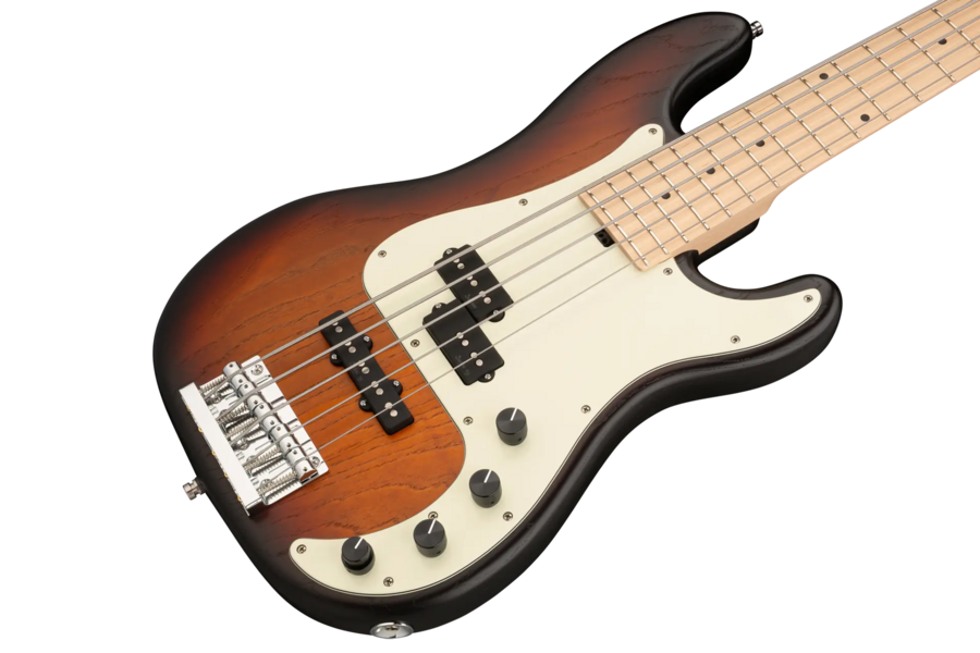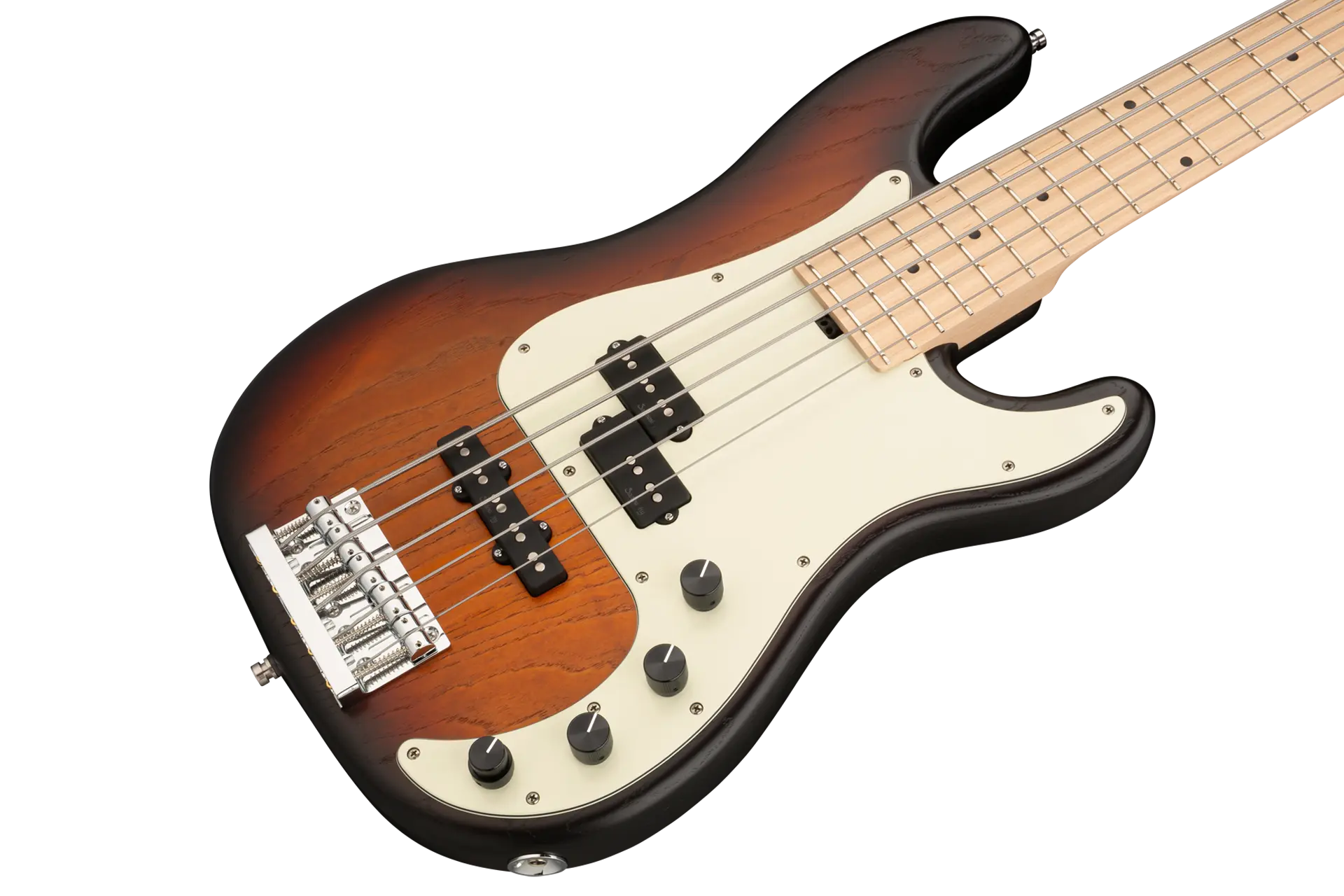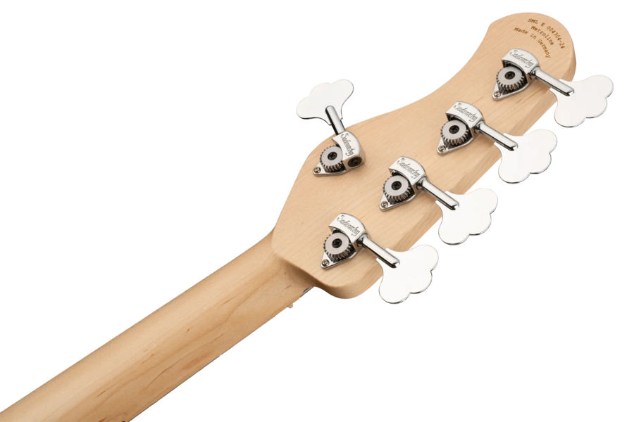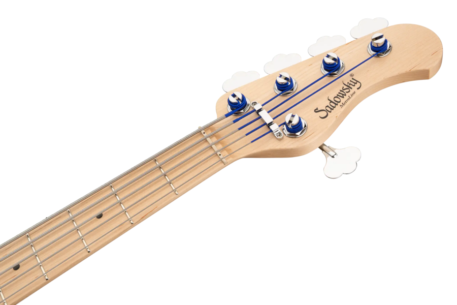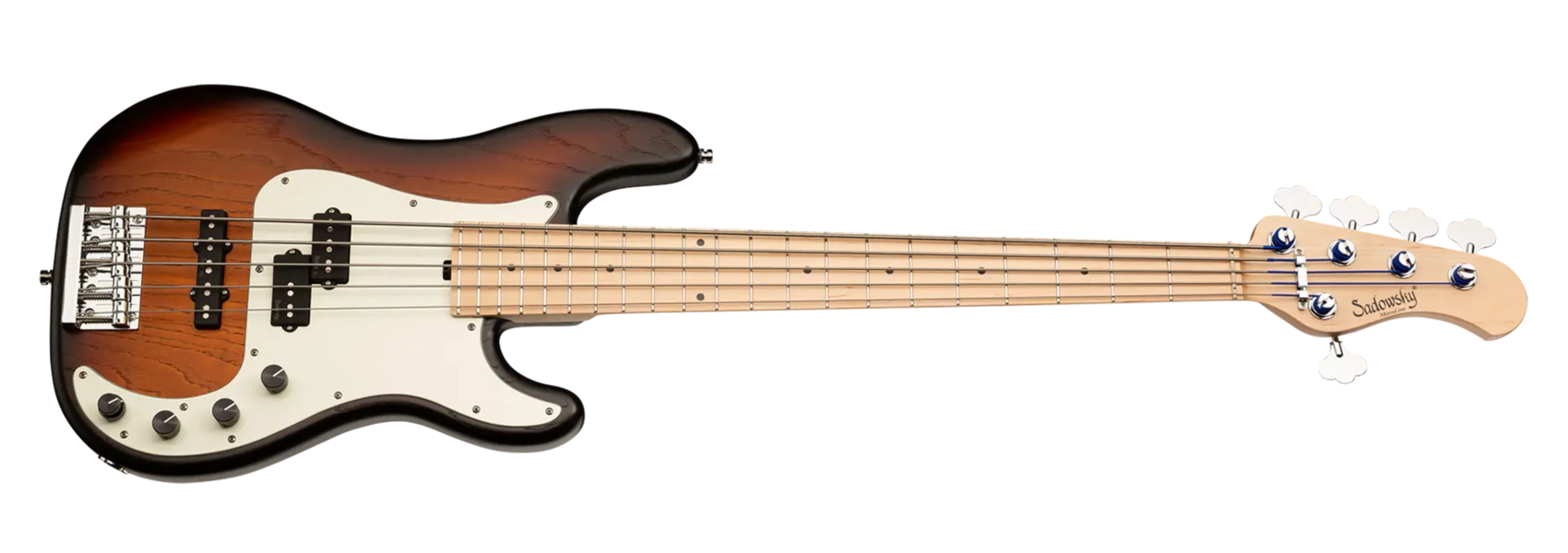Roger Sadowsky's goal was always to further improve an already very successful bass design by making a number of detailed improvements. Along with the electronics, which he developed by himself, he succeeded to raise the well-known P/J bass sound to a new level, so today you can speak of a typical Sadowsky tone: Never harsh or shrill sounding, with strong, powerful but never muddy bass, with present, but not too aggressive mids, and a sweet and airy treble range. This modern bass sound can also be found in the Sadowsky MetroLine 21-Fret Hybrid P/J Solidbody line of basses. This 5-string solidbody bass, seen here in an Almond Sunburst Transparent Satin finish, features a P-Style body made of solid American Swamp Ash.The neck is made of Maple and features a Maple fingerboard. Special features of this bass include Sadowsky P and J pickups, active electronics with true bypass, Vintage Tone Control, treble and bass boost. This bass also features light open gear Sadowsky tuners and the Sadowsky Quick String Release Bridge. Sadowsky MetroLine 21-Fret Hybrid P/J Solidbody basses are made exclusively in Germany. The weight of this bass is never more than 8.9 lbs (4.0 kg). A good choice for players who want a lightweight bass that offers a modern bass sound.