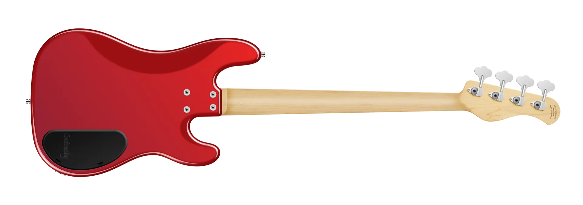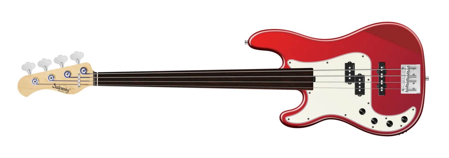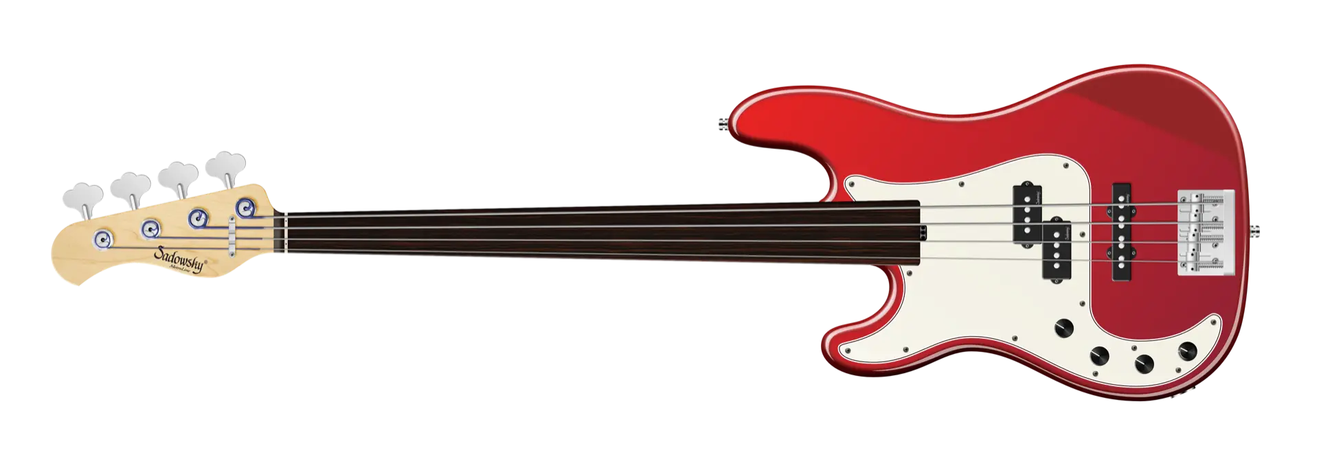 Roger Sadowsky's goal was always to further improve an already very successful bass design by making a number of detailed improvements. Along with the electronics, which he developed by himself, he succeeded to raise the well-known P/J bass sound to a new level, so today you can speak of a typical Sadowsky tone: Never harsh or shrill sounding, with strong, powerful but never muddy bass, with present, but not too aggressive mids, and a sweet and airy treble range. This modern bass sound can also be found in the Sadowsky MetroLine 21-Fret Hybrid P/J line of basses. This 4-string fretless left-hand bass, seen here in a Solid Candy Apple Red Metallic High Polish finish, features a chambered P-Style body made of American Swamp Ash. The neck is made of Maple and features a Tigerstripe Ebony fingerboard. Special features of this bass include Sadowsky P and J pickups, active electronics with true bypass, Vintage Tone Control, treble and bass boost. This bass also features light open gear Sadowsky tuners and the Sadowsky Quick String Release Bridge. Sadowsky MetroLine 21-Fret Hybrid P/J basses are made exclusively in Germany. The weight of this bass is never more than 8.9 lbs (4.0 kg). A good choice for players who want a lightweight bass that offers a modern bass sound.
