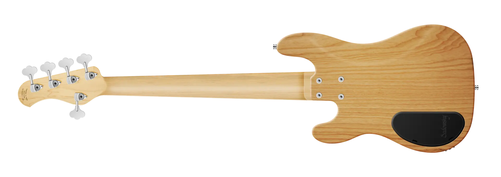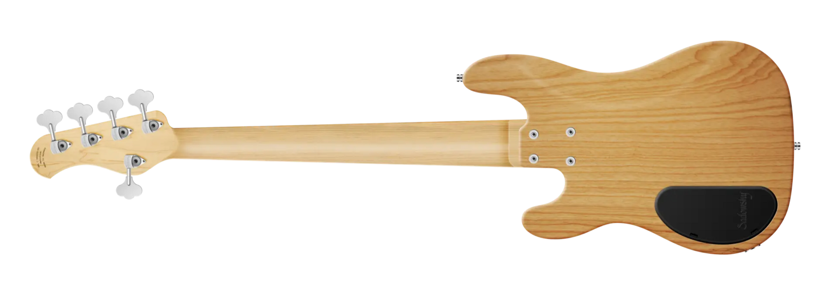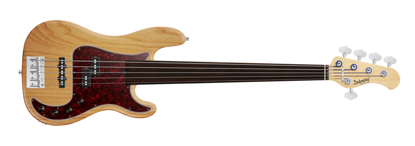 Roger Sadowsky's goal was always to further improve an already very successful bass design by making a number of detailed improvements. Along with the electronics, which he developed by himself, he succeeded to raise the well-known P/J bass sound to a new level, so today you can speak of a typical Sadowsky tone: Never harsh or shrill sounding, with strong, powerful but never muddy bass, with present, but not too aggressive mids, and a sweet and airy treble range. This modern bass sound can also be found in the Sadowsky MetroLine 21-Fret Hybrid P/J line of basses. This 5-string fretless bass, seen here in a Natural Transparent Satin finish, features a chambered P-Style body made of American Swamp Ash. The neck is made of Maple and features a Tigerstripe Ebony fingerboard. Special features of this bass include Sadowsky P and J pickups, active electronics with true bypass, Vintage Tone Control, treble and bass boost. This bass also features light open gear Sadowsky tuners and the Sadowsky Quick String Release Bridge. Sadowsky MetroLine 21-Fret Hybrid P/J basses are made exclusively in Germany. The weight of this bass is never more than 8.9 lbs (4.0 kg). A good choice for players who want a lightweight bass that offers a modern bass sound.