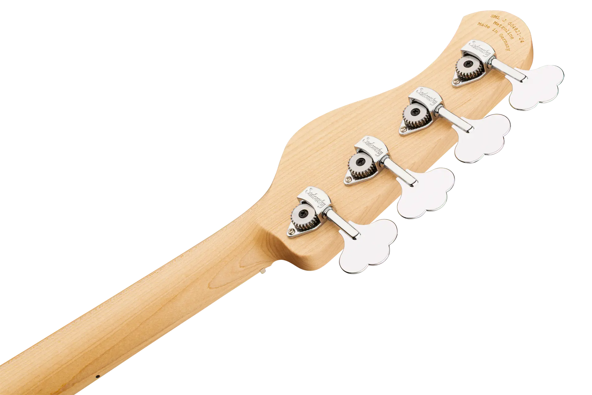 Roger Sadowsky has always aimed to improve an already successful bass design by making a number of detailed and vital changes. By engineering and creating his own electronics, Roger succeeded in improving the sound of a J/J bass with that special Sadowsky tone: Never harsh or shrill sounding. Bass that is strong and powerful but never muddy. Mids that are present but not too aggressive and a treble range that is sweet and airy. This 4-string bass features a sleek, undersized J-Style body made of chambered American Swamp Ash with a Natural Transparent Satin finish. The neck is made of American Maple and features an American Maple fingerboard. Special features of this bass include Sadowsky J-Style pickups, active electronics with true bypass, Vintage Tone Control, treble and bass boost. The hardware includes light open gear Sadowsky tuners and a Sadowsky Quick String Release Bridge. Made exclusively in Germany, a Sadowsky MetroLine 21-Fret Vintage J/J bass will never weigh more than 8.9 lbs (4.0 kg). It’s a great choice for players who want a lightweight bass that offers a modern bass sound.