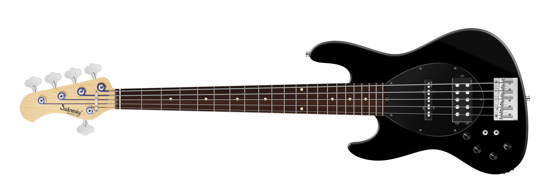 Roger Sadowsky's goal was always to further improve an already very successful bass design by making a number of detailed improvements. Along with the electronics, which he developed by himself, he succeeded to raise the well-known M/J bass sound to a new level, so today you can speak of a typical Sadowsky tone: Never harsh or shrill sounding, with strong, powerful but never muddy bass, with present, but not too aggressive mids, and a sweet and airy treble range. This modern bass sound can also be found in the Sadowsky MetroLine 21-Fret Vintage M/J line of basses. This 5-string left-hand bass, seen here in a Solid Black Satin finish, features a sleek, undersized, chambered J-Style body that is made of American Red Alder. The neck is made of American Maple and features a Morado (Pau Ferro) fingerboard. Special features of this bass include Sadowsky M and J pickups, active electronics with true bypass, Vintage Tone Control, treble and bass boost, and two 3-way toggle switches for pickup configuration (series / parallel / single coil). This bass also features light open gear Sadowsky tuners and the Sadowsky Quick String Release Bridge. Sadowsky MetroLine 21-Fret Vintage M/J basses are made exclusively in Germany. The weight of this bass is never more than 8.9 lbs (4.0 kg). A good choice for players who want a lightweight bass that offers a modern bass sound.