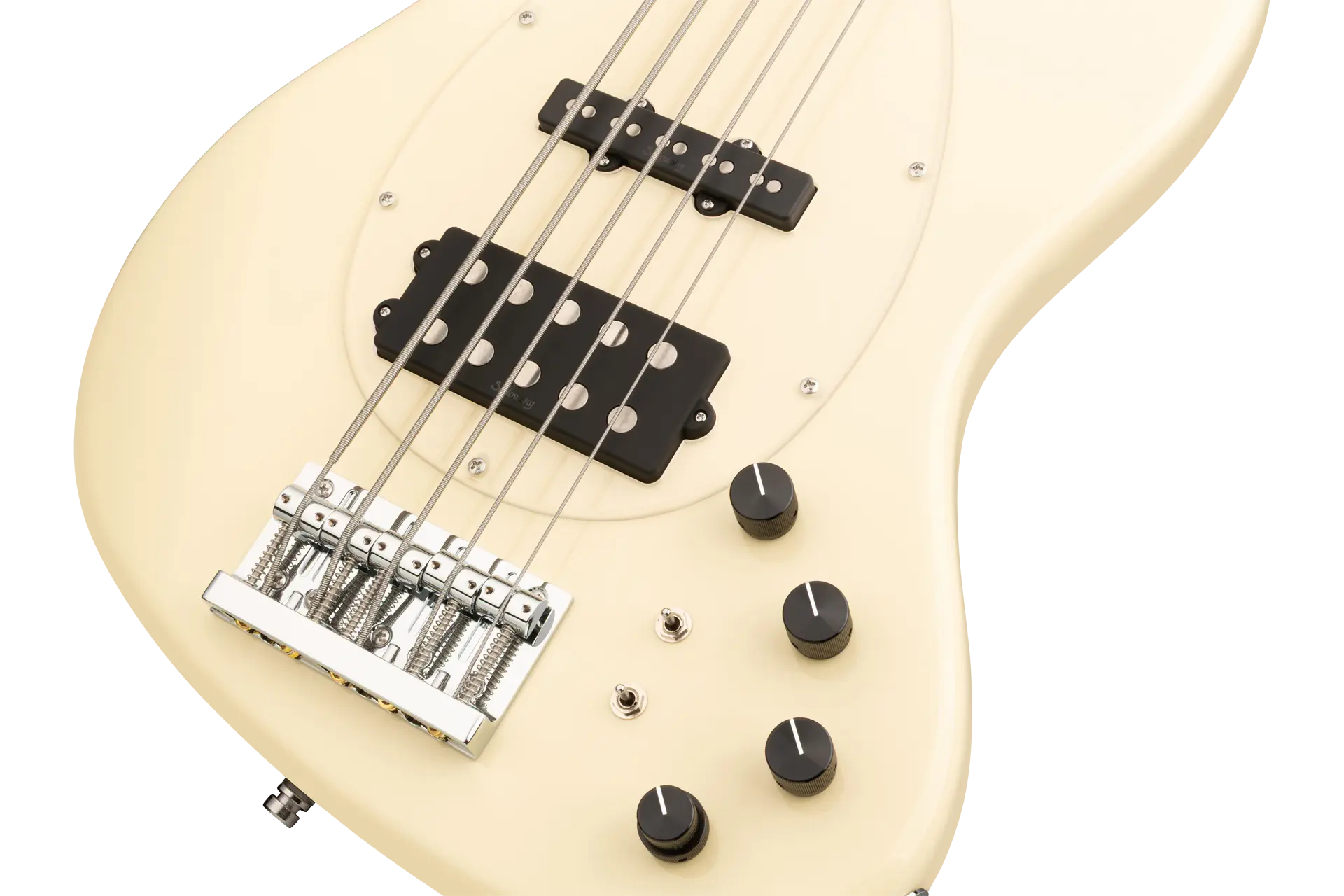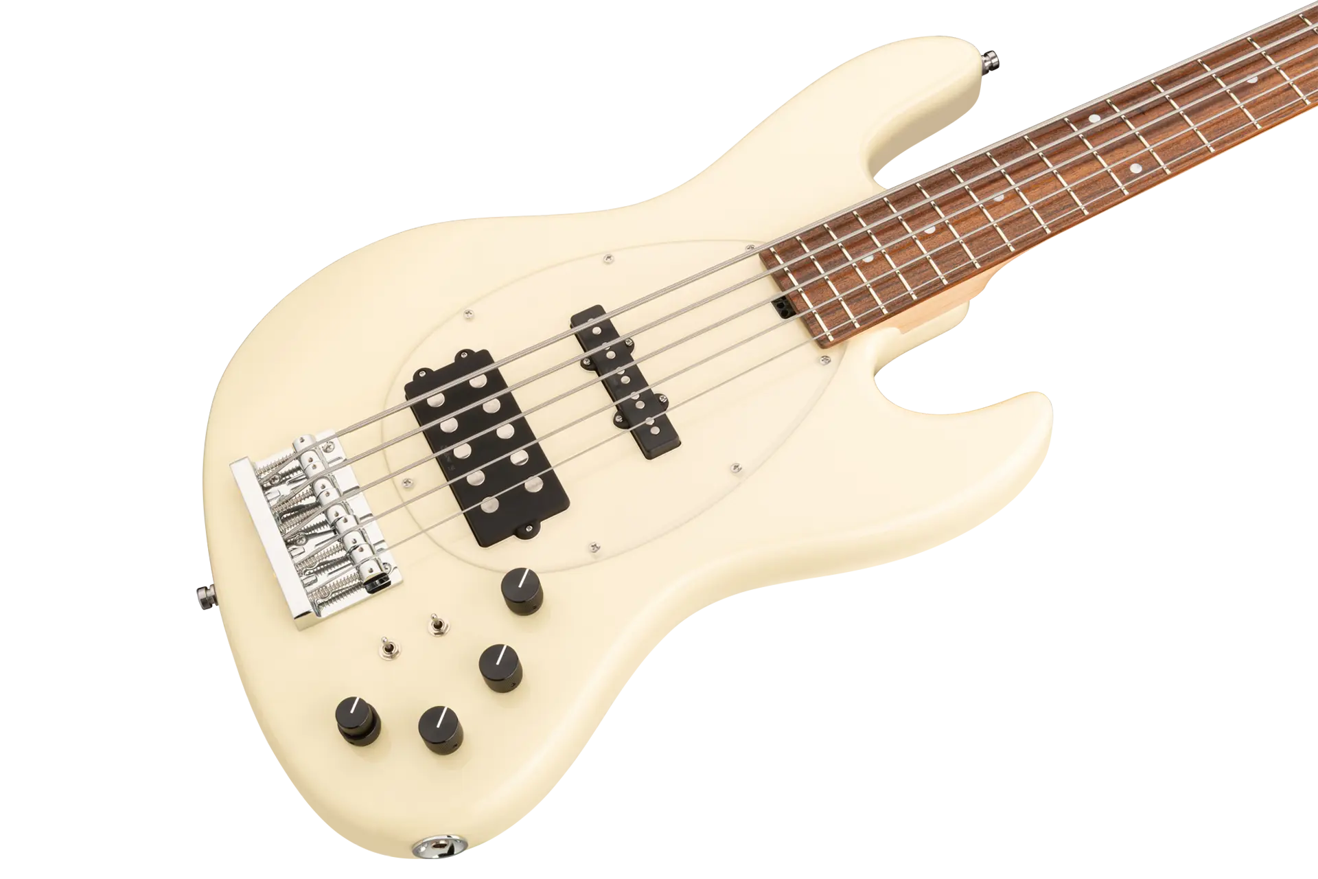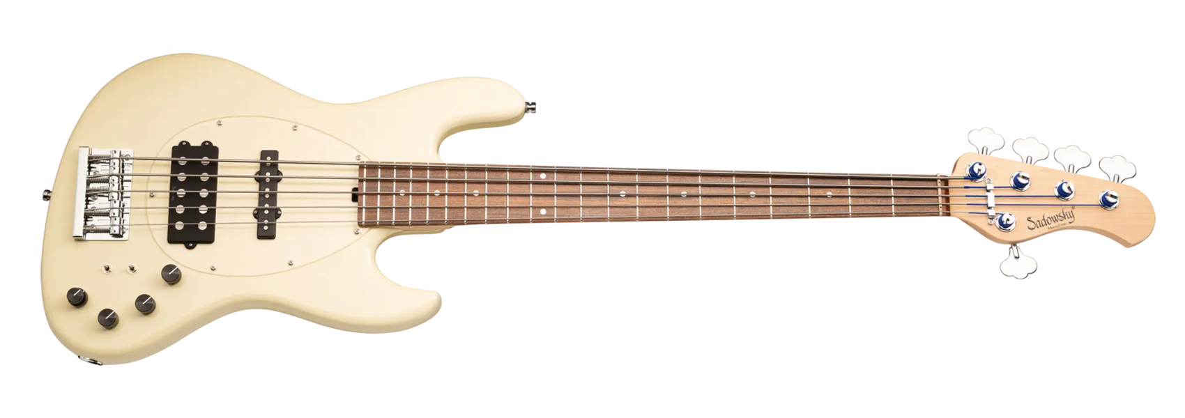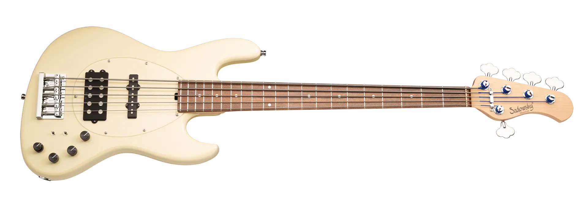 Roger Sadowsky's goal was always to further improve an already very successful bass design by making a number of detailed improvements. Along with the electronics, which he developed by himself, he succeeded to raise the well-known M/J bass sound to a new level, so today you can speak of a typical Sadowsky tone: Never harsh or shrill sounding, with strong, powerful but never muddy bass, with present, but not too aggressive mids, and a sweet and airy treble range. This modern bass sound can also be found in the Sadowsky MetroLine 21-Fret Vintage M/J line of basses. This 5-string bass, seen here in a Solid Olympic White High Polish finish, features a sleek, undersized, chambered J-Style body that is made of American Red Alder. The neck is made of American Maple and features a Morado (Pau Ferro) fingerboard. Special features of this bass include Sadowsky M and J pickups, active electronics with true bypass, Vintage Tone Control, treble and bass boost, and two 3-way toggle switches for pickup configuration (series / parallel / single coil). This bass also features light open gear Sadowsky tuners and the Sadowsky Quick String Release Bridge. Sadowsky MetroLine 21-Fret Vintage M/J basses are made exclusively in Germany. The weight of this bass is never more than 8.9 lbs (4.0 kg). A good choice for players who want a lightweight bass that offers a modern bass sound.