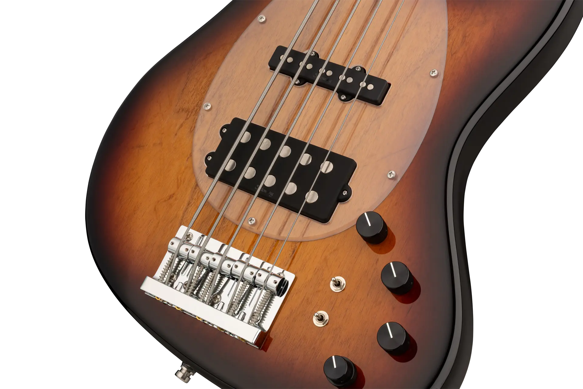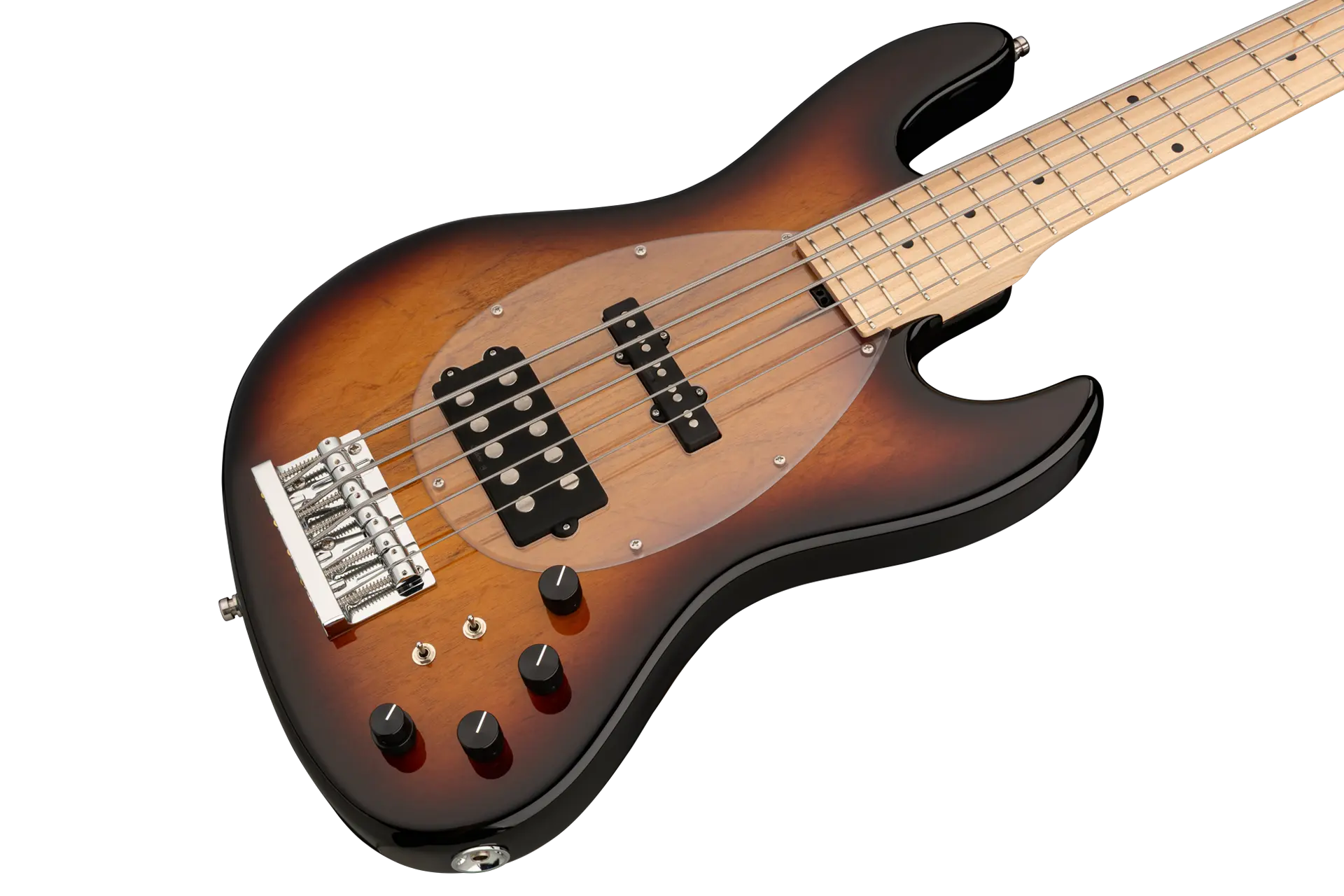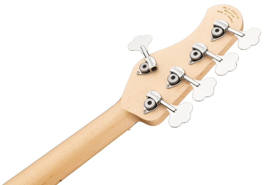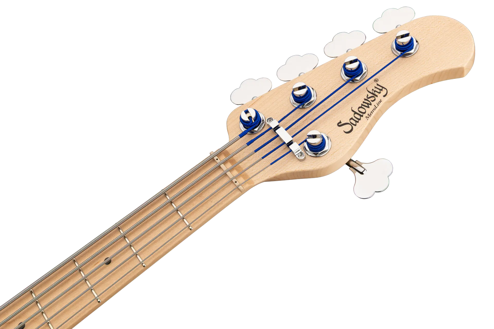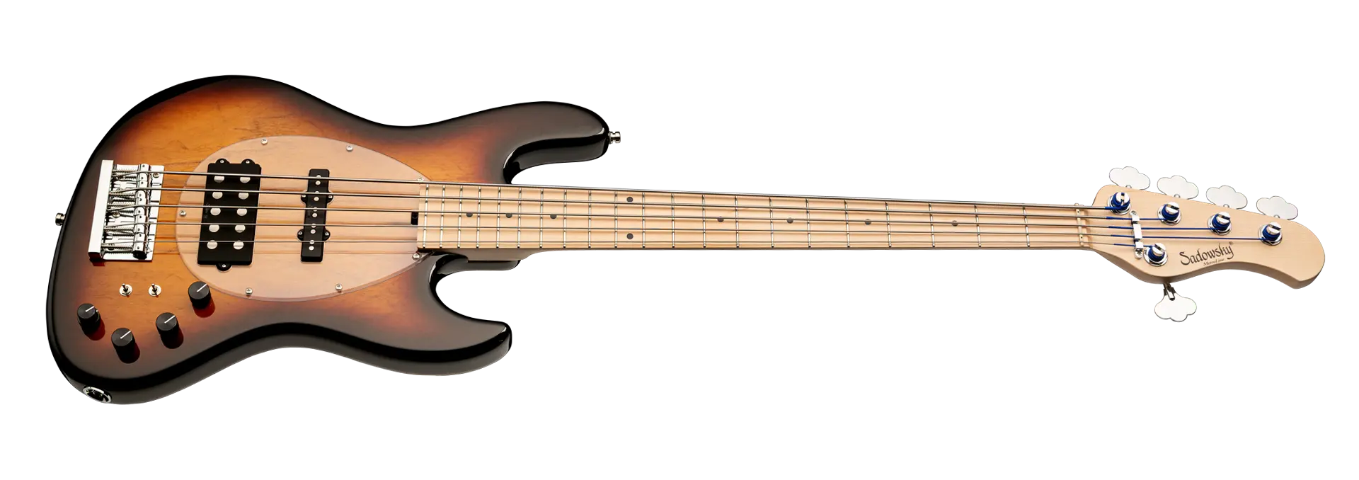 Roger Sadowsky's goal was always to further improve an already very successful bass design by making a number of detailed improvements. Along with the electronics, which he developed by himself, he succeeded to raise the well-known M/J bass sound to a new level, so today you can speak of a typical Sadowsky tone: Never harsh or shrill sounding, with strong, powerful but never muddy bass, with present, but not too aggressive mids, and a sweet and airy treble range. This modern bass sound can also be found in the Sadowsky MetroLine 21-Fret Vintage M/J line of basses. This 5-string bass, seen here in a '59 Burst Transparent High Polish finish, features a sleek, undersized, chambered J-Style body that is made of American Swamp Ash. The neck is made of American Maple and features an American Maple fingerboard. Special features of this bass include Sadowsky M and J pickups, active electronics with true bypass, Vintage Tone Control, treble and bass boost, and two 3-way toggle switches for pickup configuration (series / parallel / single coil). This bass also features light open gear Sadowsky tuners and the Sadowsky Quick String Release Bridge. Sadowsky MetroLine 21-Fret Vintage M/J basses are made exclusively in Germany. The weight of this bass is never more than 8.9 lbs (4.0 kg). A good choice for players who want a lightweight bass that offers a modern bass sound.