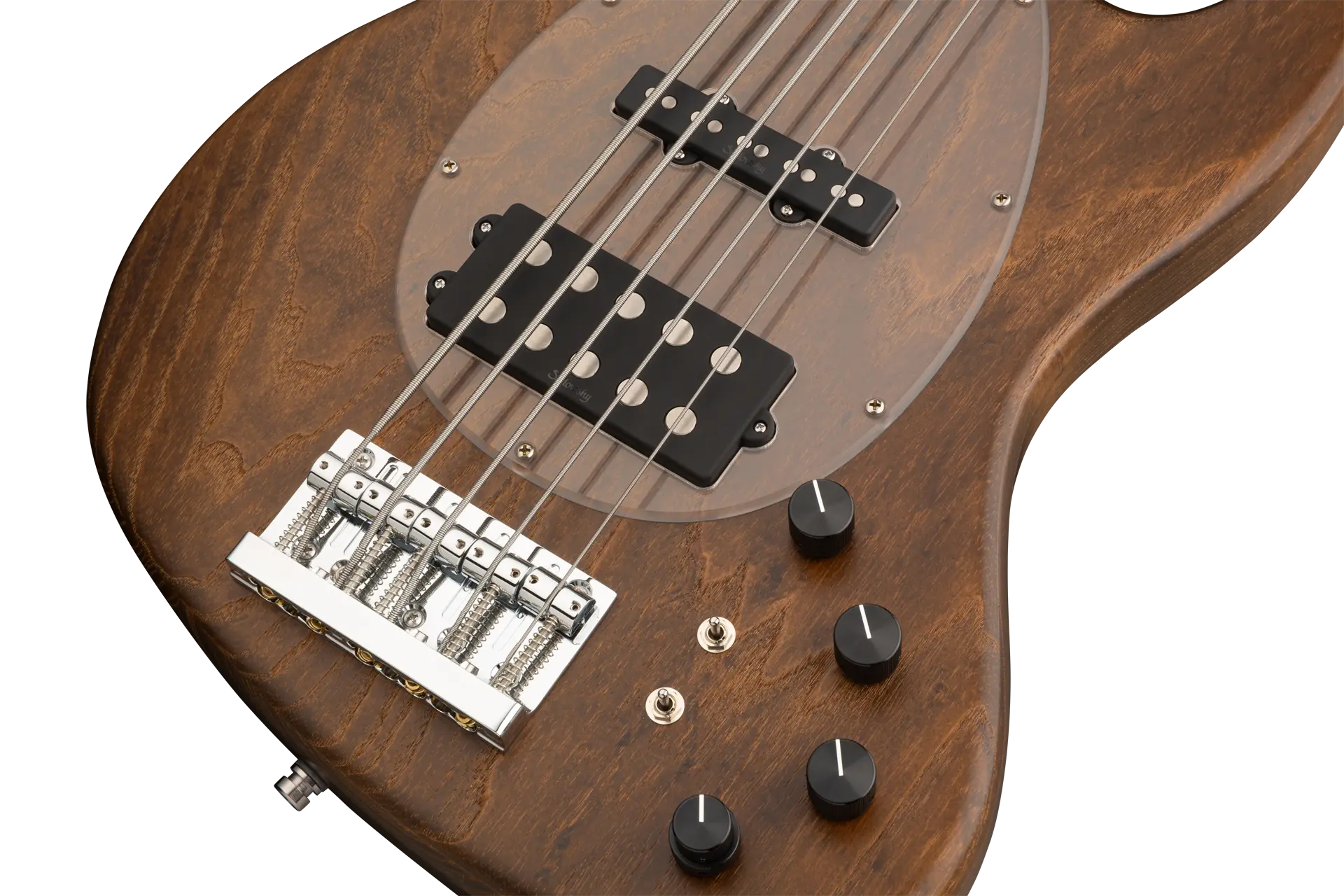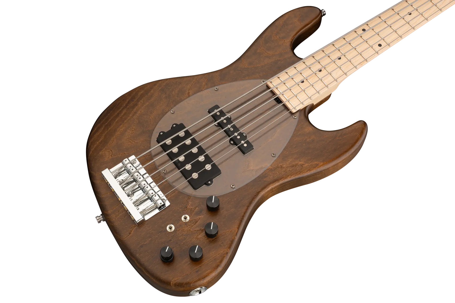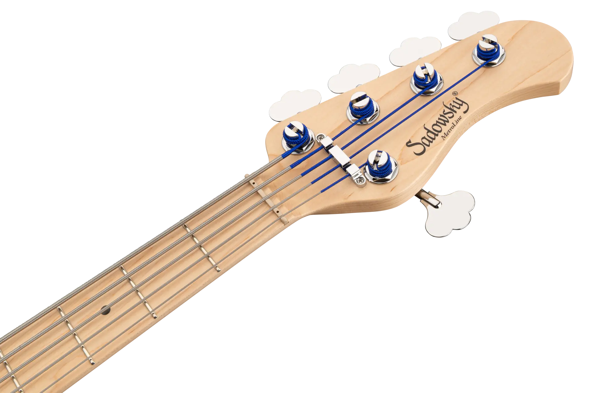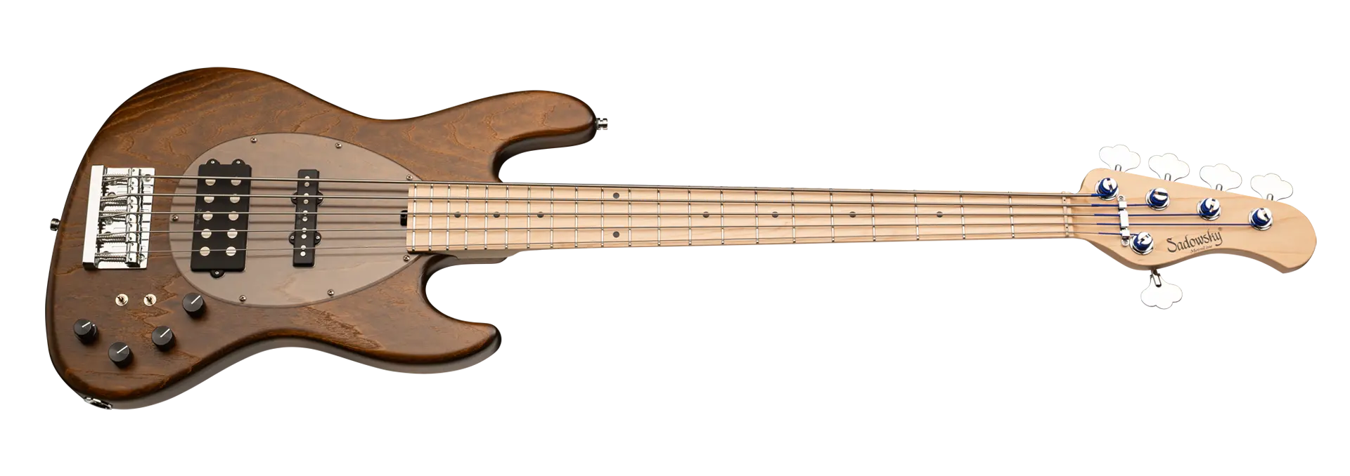 Roger Sadowsky's goal was always to further improve an already very successful bass design by making a number of detailed improvements. Along with the electronics, which he developed by himself, he succeeded to raise the well-known M/J bass sound to a new level, so today you can speak of a typical Sadowsky tone: Never harsh or shrill sounding, with strong, powerful but never muddy bass, with present, but not too aggressive mids, and a sweet and airy treble range. This modern bass sound can also be found in the Sadowsky MetroLine 21-Fret Vintage M/J line of basses. This 5-string bass, seen here in an Antique Tobacco Transparent Satin finish, features a sleek, undersized, chambered J-Style body that is made of American Swamp Ash. The neck is made of American Maple and features an American Maple fingerboard. Special features of this bass include Sadowsky M and J pickups, active electronics with true bypass, Vintage Tone Control, treble and bass boost, and two 3-way toggle switches for pickup configuration (series / parallel / single coil). This bass also features light open gear Sadowsky tuners and the Sadowsky Quick String Release Bridge. Sadowsky MetroLine 21-Fret Vintage M/J basses are made exclusively in Germany. The weight of this bass is never more than 8.9 lbs (4.0 kg). A good choice for players who want a lightweight bass that offers a modern bass sound.