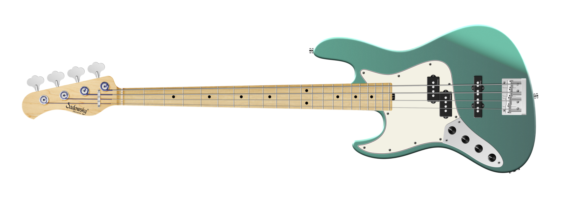 Roger Sadowsky’s goal has always been to improve a bass's design through a number of specific and integral changes. By building his own electronics, Roger succeeded in improving the sound of a traditional P/J bass with that special Sadowsky tone: Never harsh or shrill. Strong, powerful bass that is never muddy. Present, but not too aggressive, mids and a sweet and airy treble range. This 4-string left-hand P/J bass features a sleek, undersized J-Style body made of chambered American Swamp Ash finished in a Solid Sage Green Metallic Satin finish. The neck is made of American Maple and features an American Maple fingerboard. Special features of this bass include a Sadowsky P-Style neck pickup and a J-Style bridge pickup, active electronics with true bypass, Vintage Tone Control, treble and bass boost. The hardware includes light Sadowsky open gear tuners and a Sadowsky Quick String Release Bridge. The Sadowsky MetroLine 21-Fret Vintage P/J bass is made exclusively in Germany and will never weigh more than 8.9 lbs (4.0 kg). It’s a great choice for players who want a lightweight bass with a modern P/J bass sound.