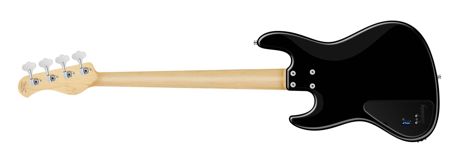 Roger Sadowsky's goal was always to further improve an already very successful bass design by making a number of detailed improvements. Roger succeeded in raising the well-known P/J bass sound to a new level with the Sadowsky tone: Never harsh or shrill sounding, with strong, powerful but never muddy bass, with present, but not too aggressive mids, and a sweet and airy treble range. This modern bass sound can also be found in the Sadowsky MetroLine Will Lee Artist line basses. Will Lee is one of the best and most requested bass players in the world, having played for Late Night / Late Show with David Letterman, Horace Silver, George Benson, Bette Middler and many more). This 4-string fretless bass, seen here in a Solid Black High Polish finish, features a sleek, undersized, chambered J-Style body made of Red Alder. The slim neck is made of American Maple and features a Tigerstripe Ebony fingerboard. Also included are Sadowsky J/J pickups and active electronics with true bypass, a custom made preamp built to Will Lee's own specifications with added mid-boost (500 and 800 Hz) for more punch, plus Vintage Tone Control, treble and bass boost. This bass also features ultralight Sadowsky tuners and the Sadowsky Quick String Release Bridge. Sadowsky MetroLine Artist Line basses are made exclusively in Germany. The weight of this bass is never more than 8.9 lbs (4.0 kg). A good choice for players who want a lightweight bass that offers a modern bass sound.