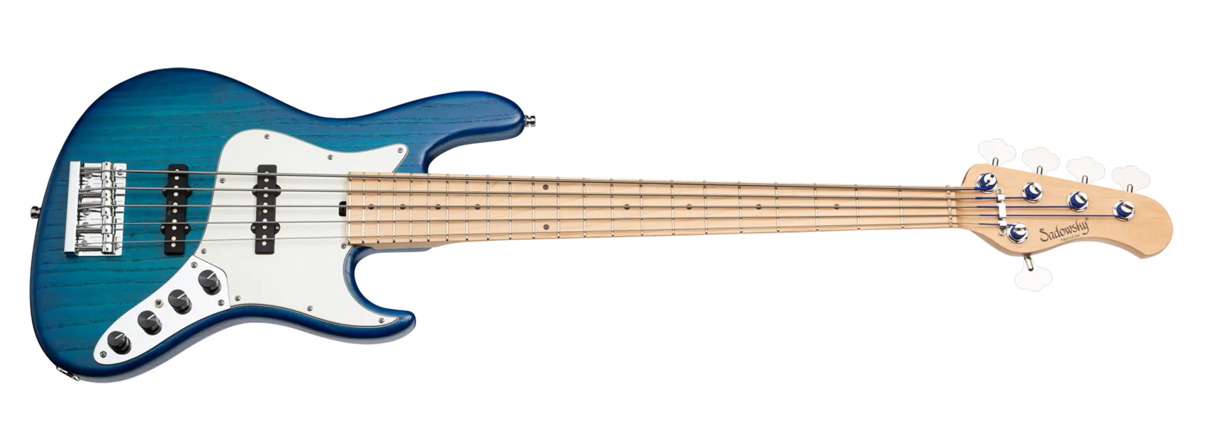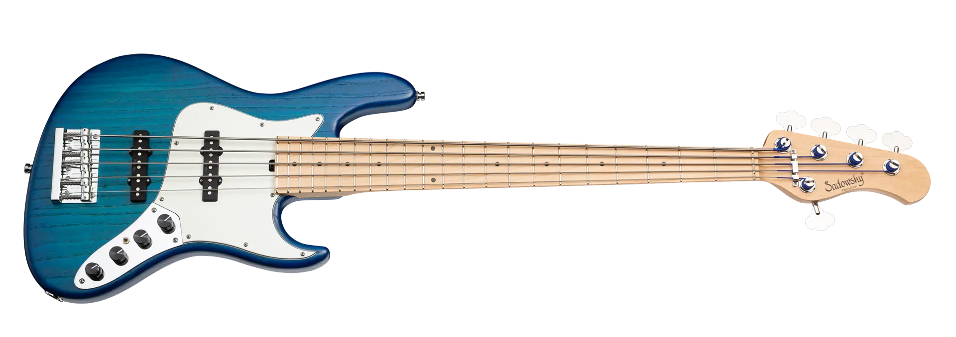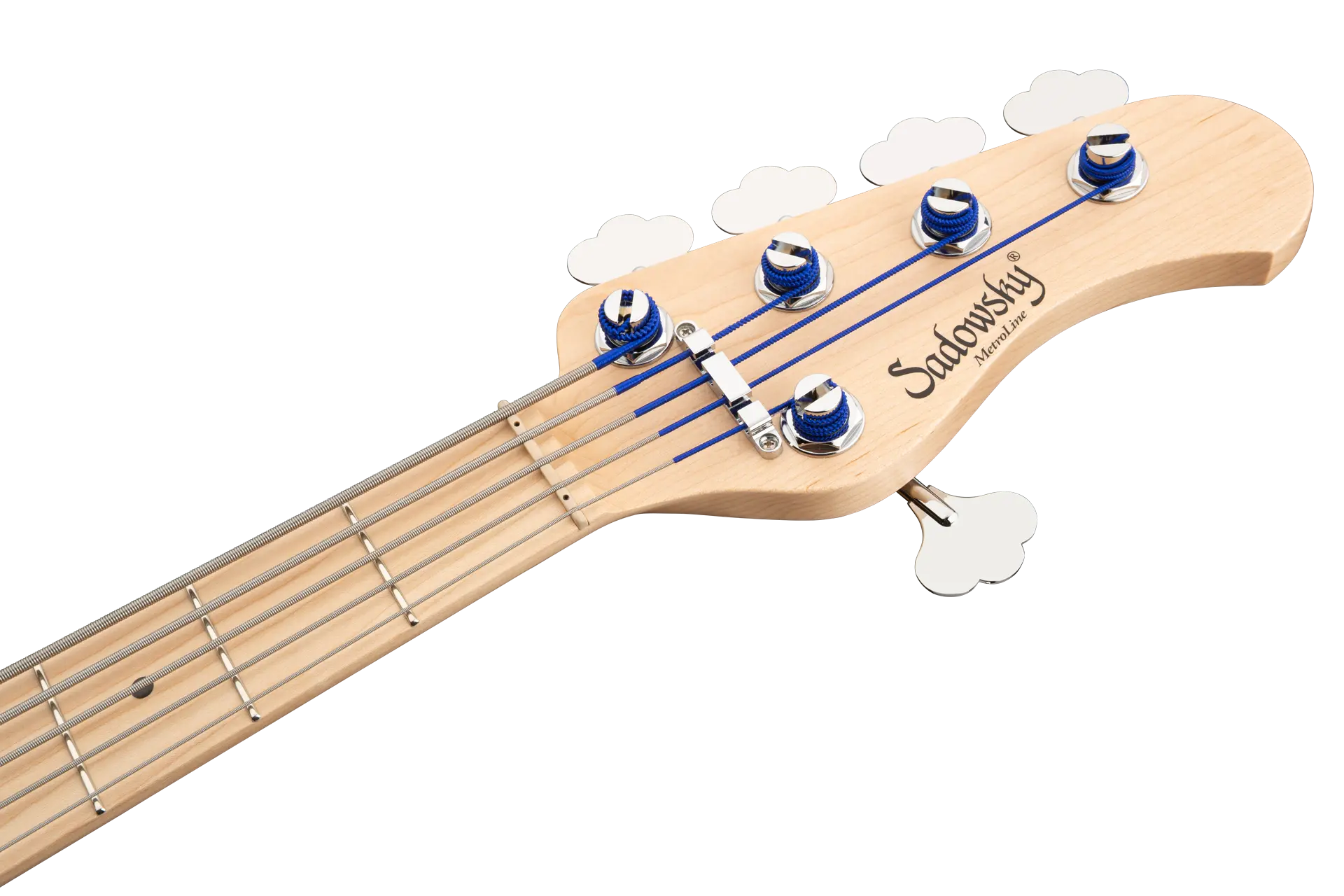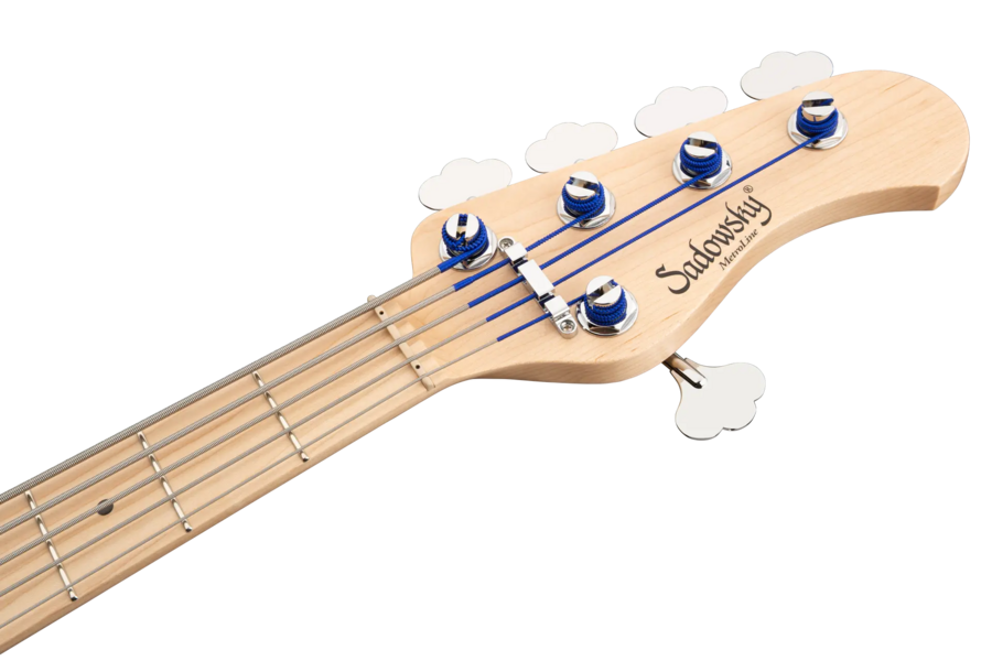 Roger Sadowsky's goal was always to further improve an already very successful bass design by making a number of detailed improvements. Roger succeeded in raising the well-known P/J bass sound to a new level with the Sadowsky tone: Never harsh or shrill sounding, with strong, powerful but never muddy bass, with present, but not too aggressive mids, and a sweet and airy treble range. This modern bass sound can also be found in the Sadowsky MetroLine Will Lee Artist line basses. Will Lee is one of the best and most requested bass players in the world, having played for Late Night / Late Show with David Letterman, Horace Silver, George Benson, Bette Middler and many more). This 5-string bass, seen here in a Bora Blue Burst Transparent Satin finish, features a sleek, undersized, chambered J-Style body made of American Swamp Ash. The slim neck is made of American Maple and features an American Maple fingerboard. Also included are Sadowsky J/J pickups and active electronics with true bypass, a custom made preamp built to Will Lee's own specifications with added mid-boost (500 and 800 Hz) for more punch, plus Vintage Tone Control, treble and bass boost. This bass also features ultralight Sadowsky tuners and the Sadowsky Quick String Release Bridge. Sadowsky MetroLine Artist Line basses are made exclusively in Germany. The weight of this bass is never more than 8.9 lbs (4.0 kg). A good choice for players who want a lightweight bass that offers a modern bass sound.