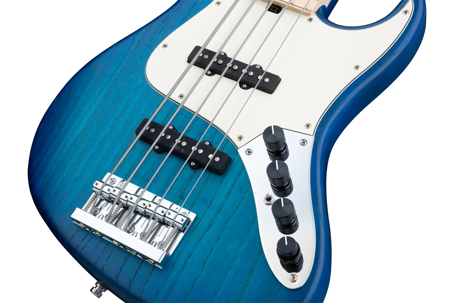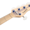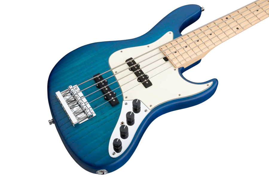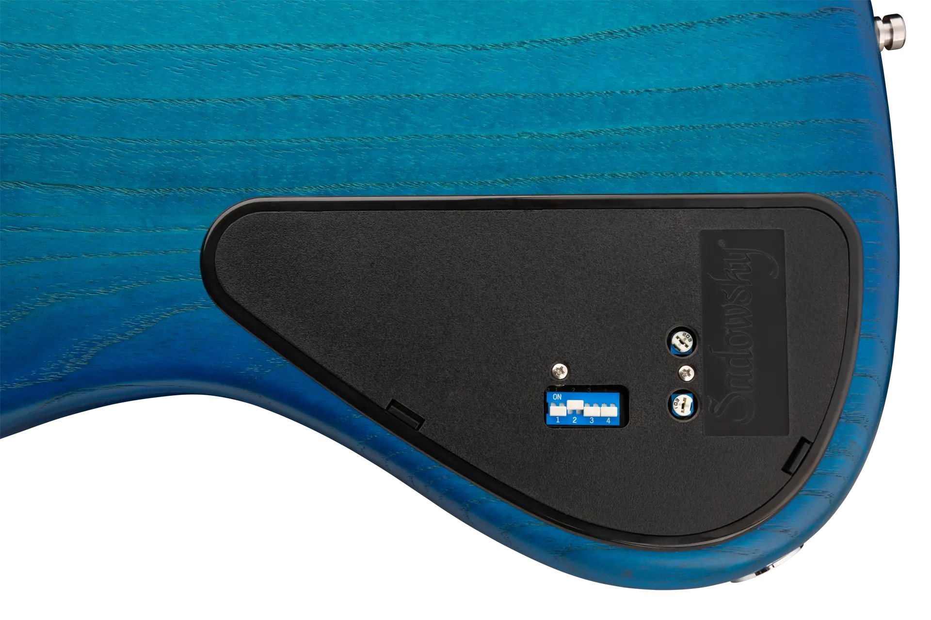 Roger Sadowsky's goal was always to further improve an already very successful bass design by making a number of detailed improvements. Roger succeeded in raising the well-known P/J bass sound to a new level with the Sadowsky tone: Never harsh or shrill sounding, with strong, powerful but never muddy bass, with present, but not too aggressive mids, and a sweet and airy treble range. This modern bass sound can also be found in the Sadowsky MetroLine Will Lee Artist line basses. Will Lee is one of the best and most requested bass players in the world, having played for Late Night / Late Show with David Letterman, Horace Silver, George Benson, Bette Middler and many more). This 5-string bass, seen here in a Bora Blue Burst Transparent Satin finish, features a sleek, undersized, chambered J-Style body made of American Swamp Ash. The slim neck is made of American Maple and features an American Maple fingerboard. Also included are Sadowsky J/J pickups and active electronics with true bypass, a custom made preamp built to Will Lee's own specifications with added mid-boost (500 and 800 Hz) for more punch, plus Vintage Tone Control, treble and bass boost. This bass also features ultralight Sadowsky tuners and the Sadowsky Quick String Release Bridge. Sadowsky MetroLine Artist Line basses are made exclusively in Germany. The weight of this bass is never more than 8.9 lbs (4.0 kg). A good choice for players who want a lightweight bass that offers a modern bass sound.