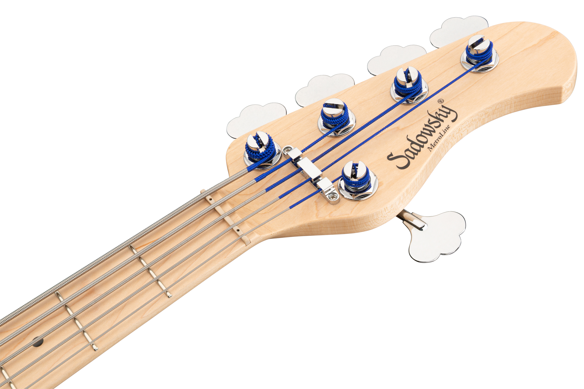 Roger Sadowsky's goal was always to further improve an already very successful bass design by making a number of detailed improvements. Roger succeeded in raising the well-known P/J bass sound to a new level with the Sadowsky tone: Never harsh or shrill sounding, with strong, powerful but never muddy bass, with present, but not too aggressive mids, and a sweet and airy treble range. This modern bass sound can also be found in the Sadowsky MetroLine Will Lee Artist line basses. Will Lee is one of the best and most requested bass players in the world, having played for Late Night / Late Show with David Letterman, Horace Silver, George Benson, Bette Middler and many more). This 5-string bass, seen here in a Solid Dark Lake Placid Blue Metallic High Polish finish, features a sleek, undersized, chambered J-Style body made of American Swamp Ash. The slim neck is made of American Maple and features an American Maple fingerboard. Also included are Sadowsky J/J pickups and active electronics with true bypass, a custom made preamp built to Will Lee's own specifications with added mid-boost (500 and 800 Hz) for more punch, plus Vintage Tone Control, treble and bass boost. This bass also features ultralight Sadowsky tuners and the Sadowsky Quick String Release Bridge. Sadowsky MetroLine Artist Line basses are made exclusively in Germany. The weight of this bass is never more than 8.9 lbs (4.0 kg). A good choice for players who want a lightweight bass that offers a modern bass sound.
