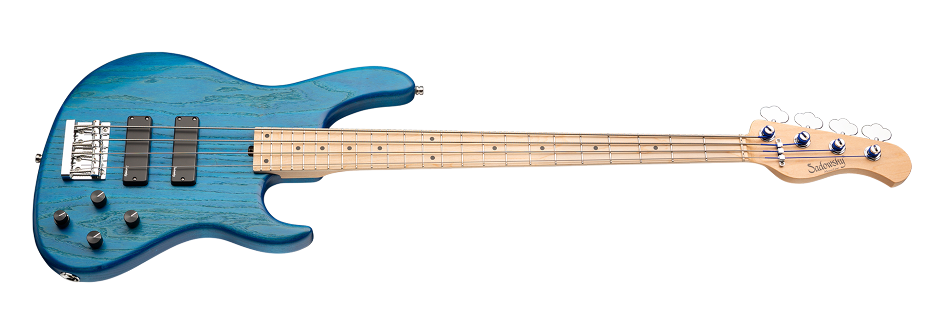 The Sadowsky MetroLine 24-Fret Modern Bass is perfect for any player looking for a bass with modern looks and that famous Sadowsky tone: Never harsh or shrill sounding, with strong, powerful but never muddy bass, with present, but not too aggressive mids, and a sweet and airy treble range. This 4-string bass has a chambered American Swamp Ash body. Seen here in an Ocean Blue Transparent Satin finish, the body shape is sleek and undersized with deeper cutaways for better playability and a full two octave note range. The neck is made from American Maple and has an American Maple fretboard with 24 nickel silver frets. This bass is fitted with two passive Sadowsky Soapbar pickups, both in a modern position, and has active electronics that offer true bypass, Vintage Tone Control, as well as treble and bass boost. Hardware includes Sadowsky light open gear tuners and a Sadowsky Quick String Release bridge. Each Sadowsky MetroLine 24-Fret Modern Bass is made exclusively in our workshop in Germany and weighs no more than 8.9 lbs (4.0 kg). A good choice for bass players who are seaching for a light, modern looking bass with that special modern Sadowsky sound.