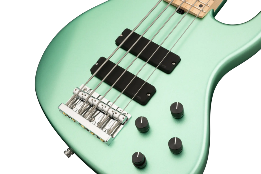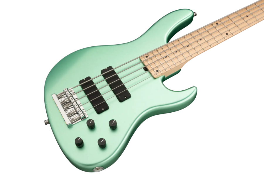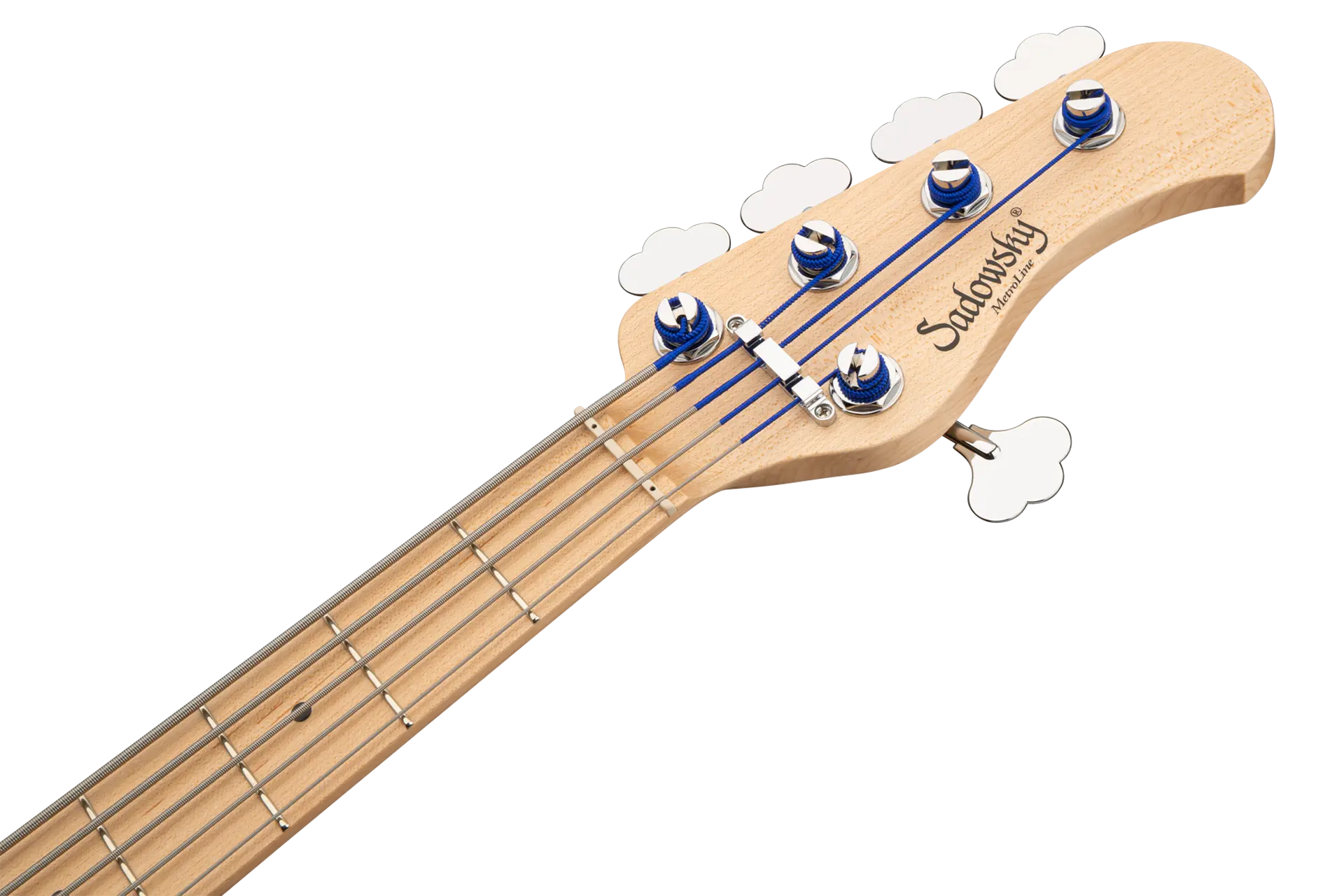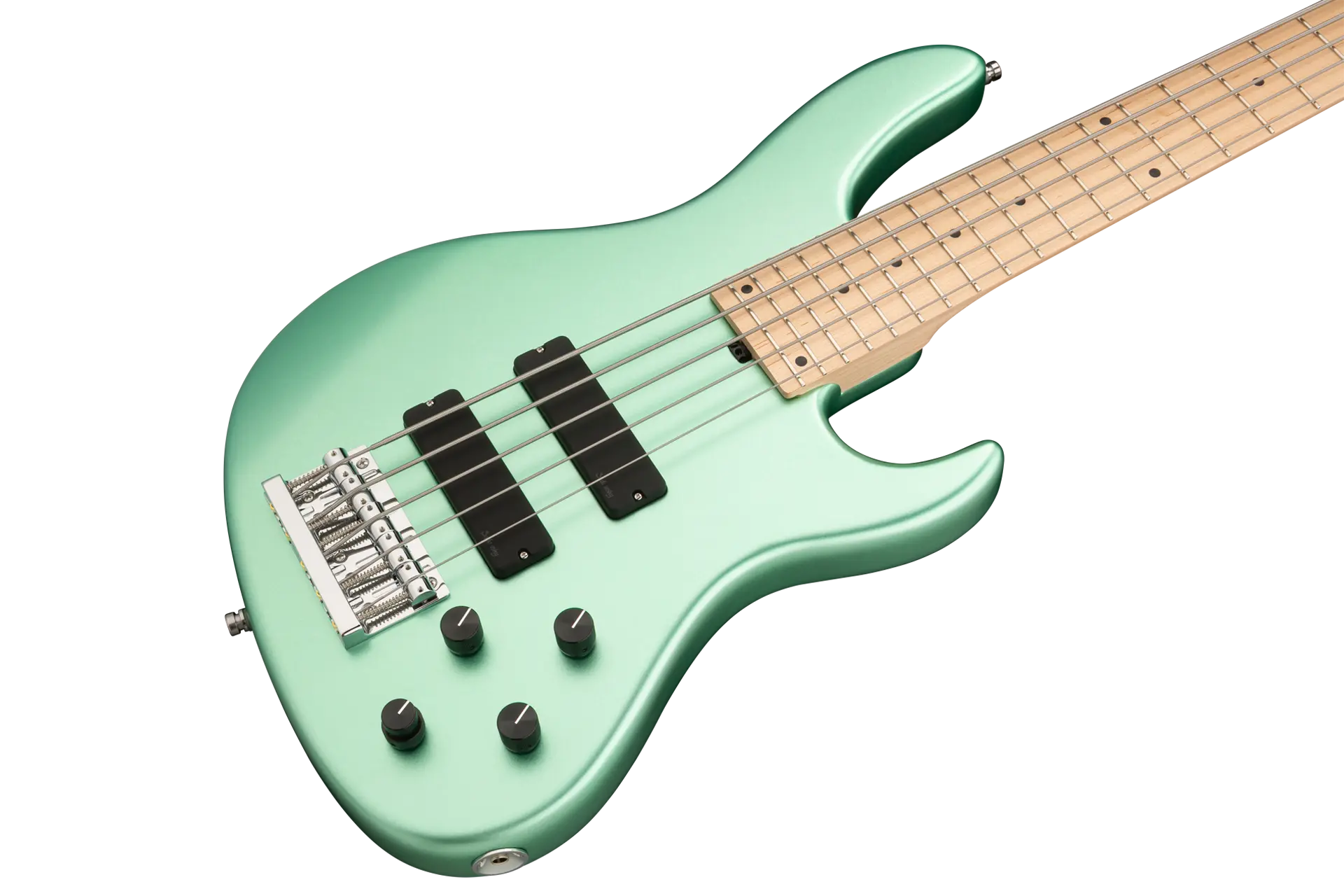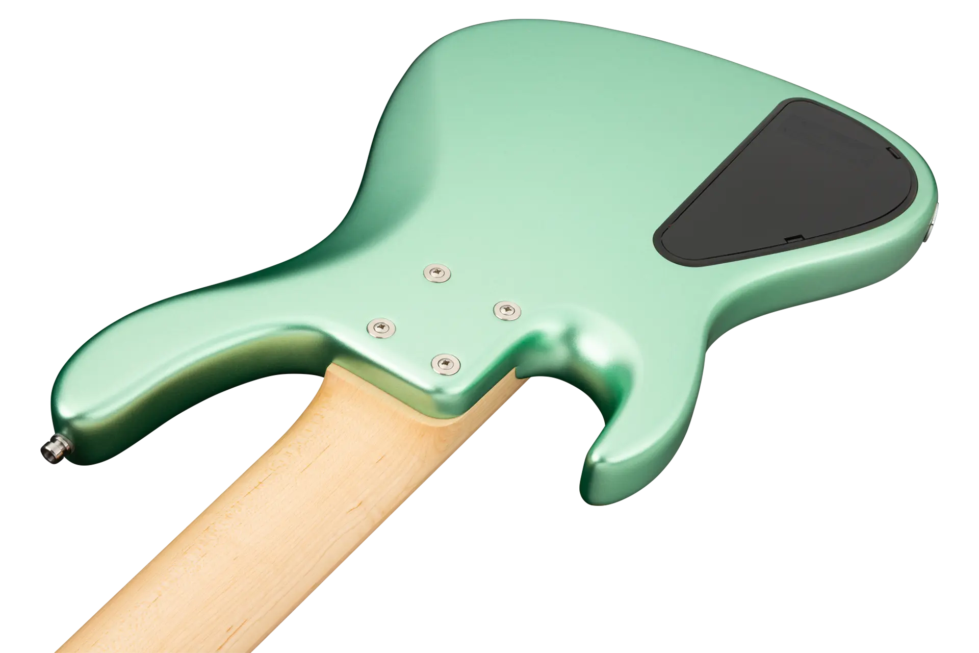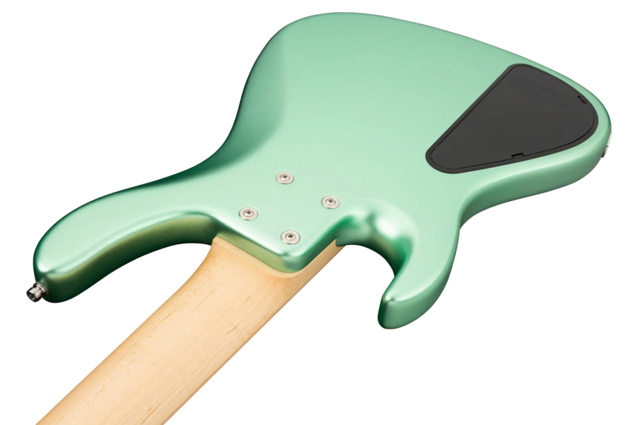 The Sadowsky MetroLine 24-Fret Modern Bass is perfect for any player looking for a bass with modern looks and that famous Sadowsky tone: Never harsh or shrill sounding, with strong, powerful but never muddy bass, with present, but not too aggressive mids, and a sweet and airy treble range. This 5-string bass has a chambered Swamp Ash body. Seen here in a Solid Sage Green Metallic Satin finish, the body shape is sleek and undersized with deeper cutaways for better playability and a full two octave note range. The neck is made from American Maple and has an American Maple fretboard with 24 nickel silver frets. This bass is fitted with two passive Sadowsky Soapbar pickups, both in a modern position, and has active electronics that offer true bypass, Vintage Tone Control, as well as treble and bass boost. Hardware includes Sadowsky light open gear tuners and a Sadowsky Quick String Release bridge. Each Sadowsky MetroLine 24-Fret Modern Bass is made exclusively in our workshop in Germany and weighs no more than 8.9 lbs (4.0 kg). A good choice for bass players who are seaching for a light, modern looking bass with that special modern Sadowsky sound.
