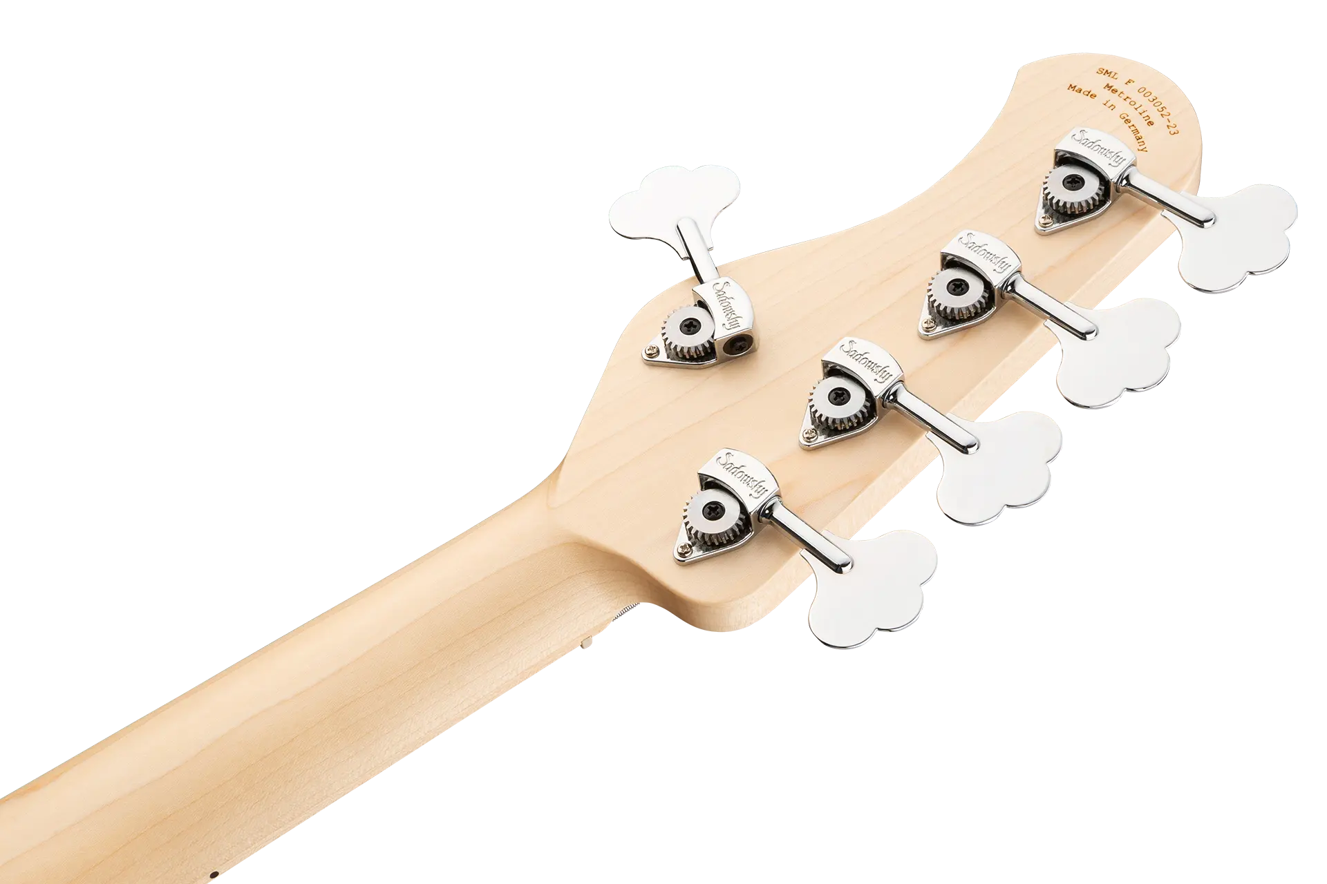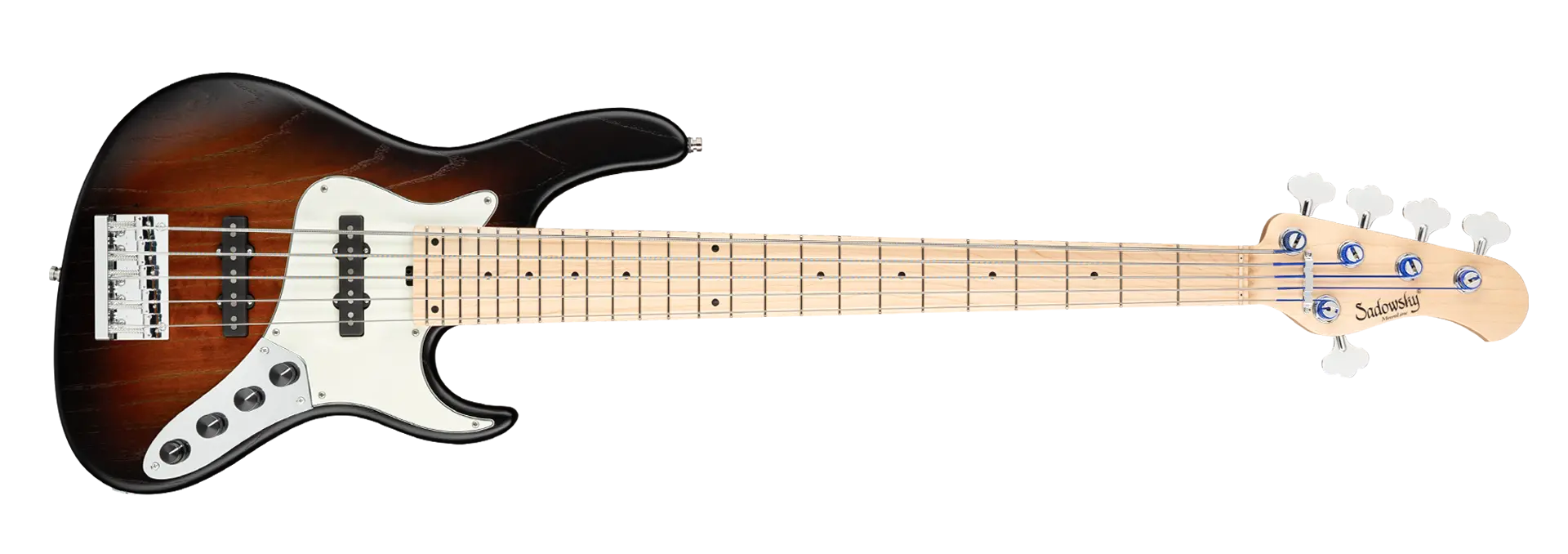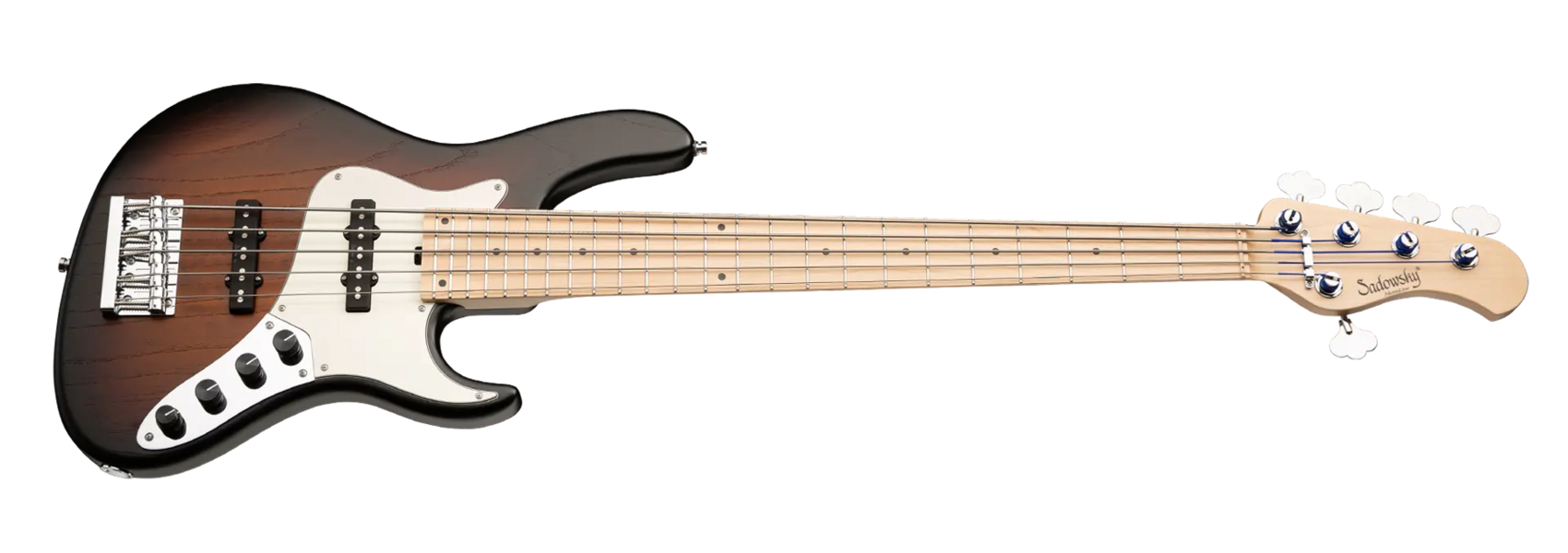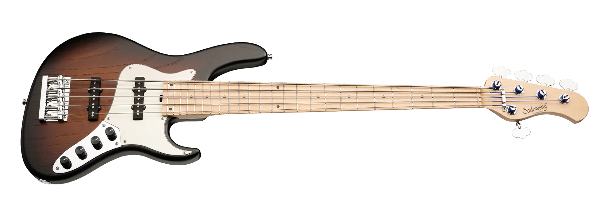 The Sadowsky MetroLine 24-Fret Vintage J/J Bass pays tribute to Roger Sadowsky’s ability to greatly improve an already successful bass design via a number of detailed changes resulting in that special Sadowsky bass tone: Never harsh or shrill sounding, with strong, powerful but never muddy bass. Present, but not too aggressive mids, and a sweet and airy treble. This 5-string bass features a sleek, undersized chambered J-Style body made of American Swamp Ash that is finished in an Almond Sunburst Transparent Satin finish. It is fitted with Sadowsky J-Style pickups and active electronics with true bypass, Vintage Tone Control and treble / bass boost. The American Maple neck has an American Maple fretboard with 24 nickel silver frets. Hardware includes ultra-light Sadowsky tuners and the special Sadowsky Quick String Release bridge. Made exclusively in Germany, a Sadowsky MetroLine 24-Fret Vintage J/J Bass will never weigh more than 8.9 lbs / 4.0 kg. It’s an excellent choice for bass players who are looking for a lightweight instrument with a modern bass sound.