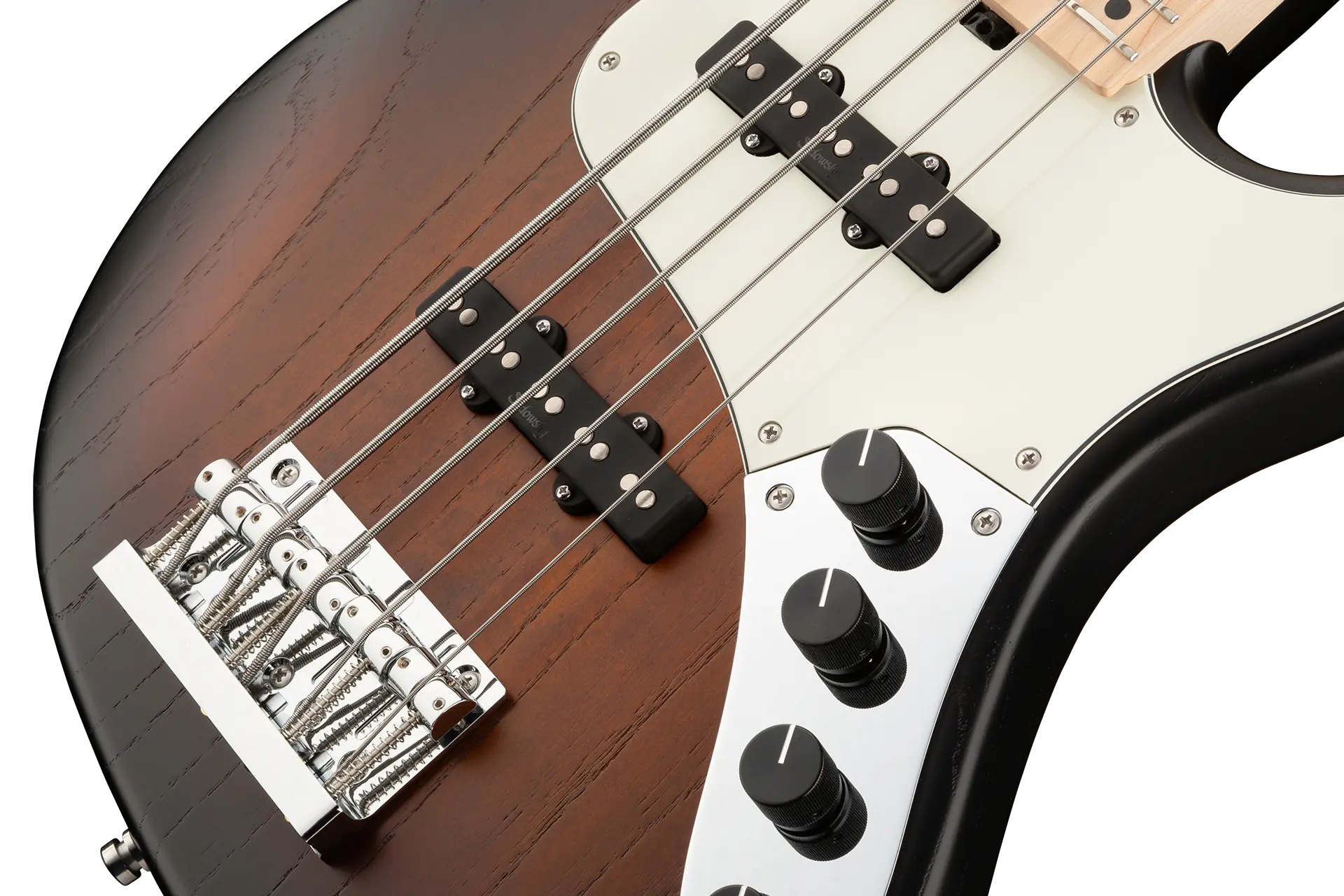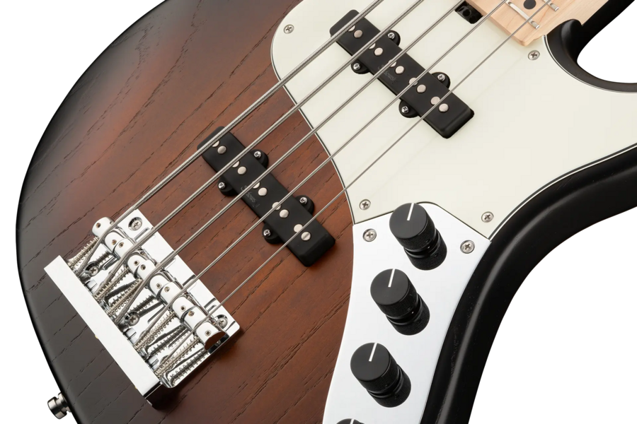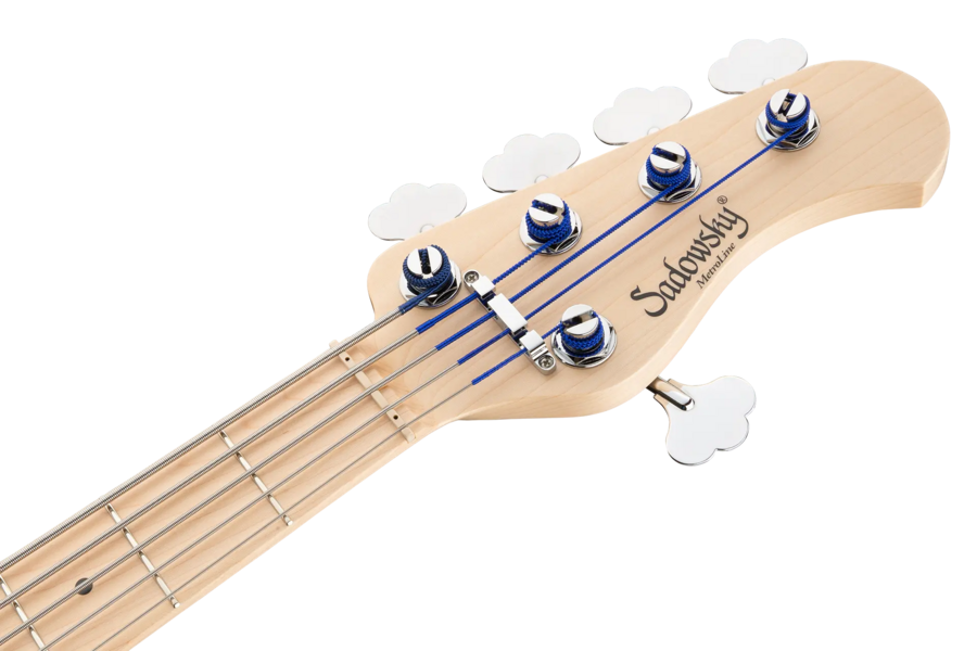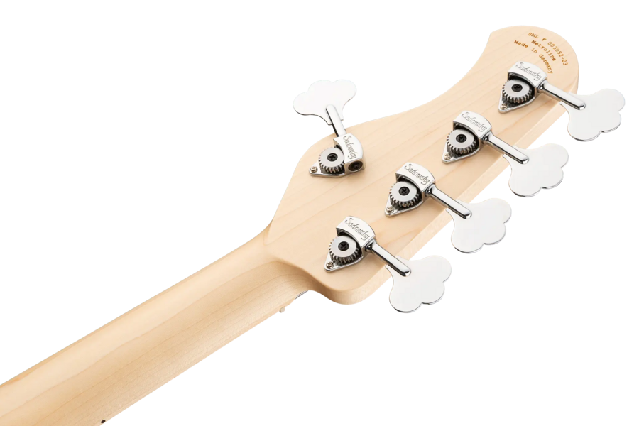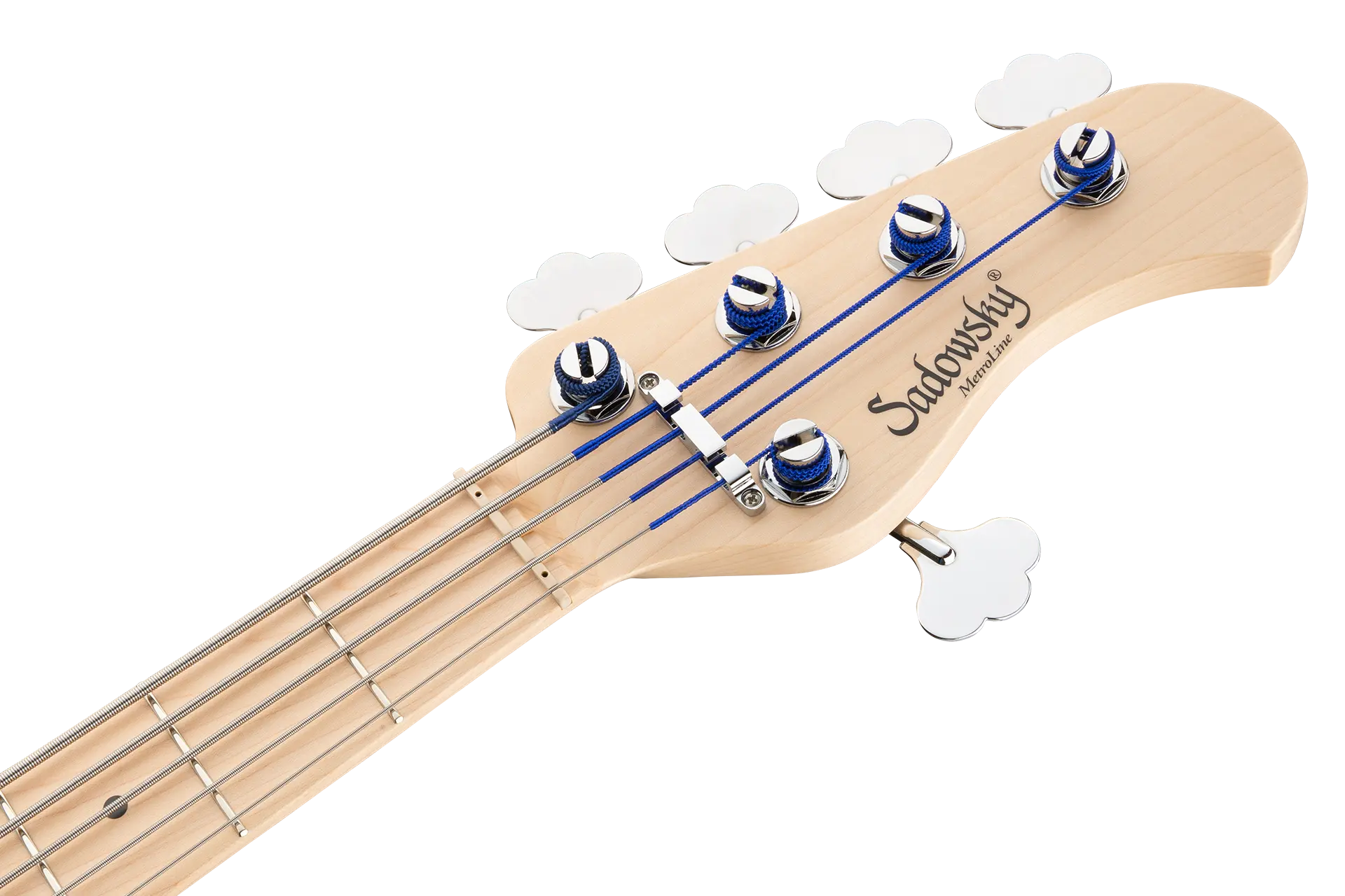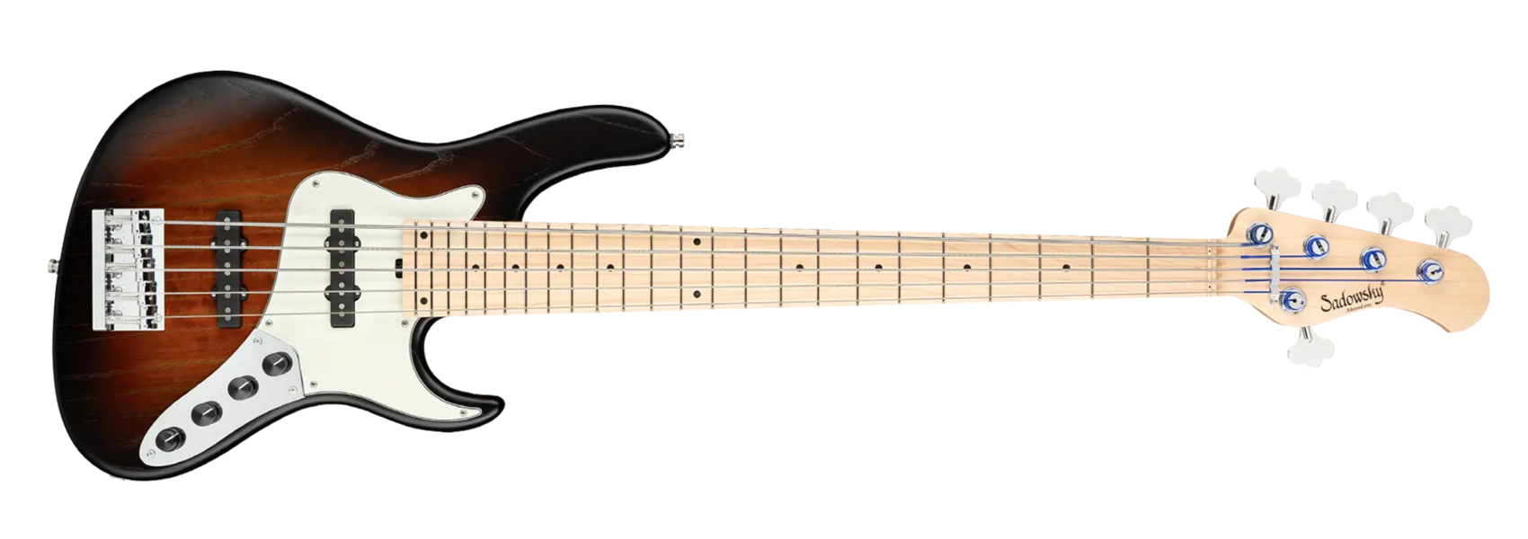 The Sadowsky MetroLine 24-Fret Vintage J/J Bass pays tribute to Roger Sadowsky’s ability to greatly improve an already successful bass design via a number of detailed changes resulting in that special Sadowsky bass tone: Never harsh or shrill sounding, with strong, powerful but never muddy bass. Present, but not too aggressive mids, and a sweet and airy treble. This 5-string bass features a sleek, undersized chambered J-Style body made of American Swamp Ash that is finished in an Almond Sunburst Transparent Satin finish. It is fitted with Sadowsky J-Style pickups and active electronics with true bypass, Vintage Tone Control and treble / bass boost. The American Maple neck has an American Maple fretboard with 24 nickel silver frets. Hardware includes ultra-light Sadowsky tuners and the special Sadowsky Quick String Release bridge. Made exclusively in Germany, a Sadowsky MetroLine 24-Fret Vintage J/J Bass will never weigh more than 8.9 lbs / 4.0 kg. It’s an excellent choice for bass players who are looking for a lightweight instrument with a modern bass sound.