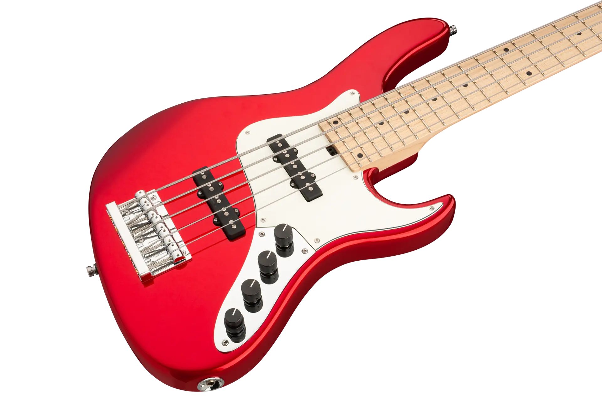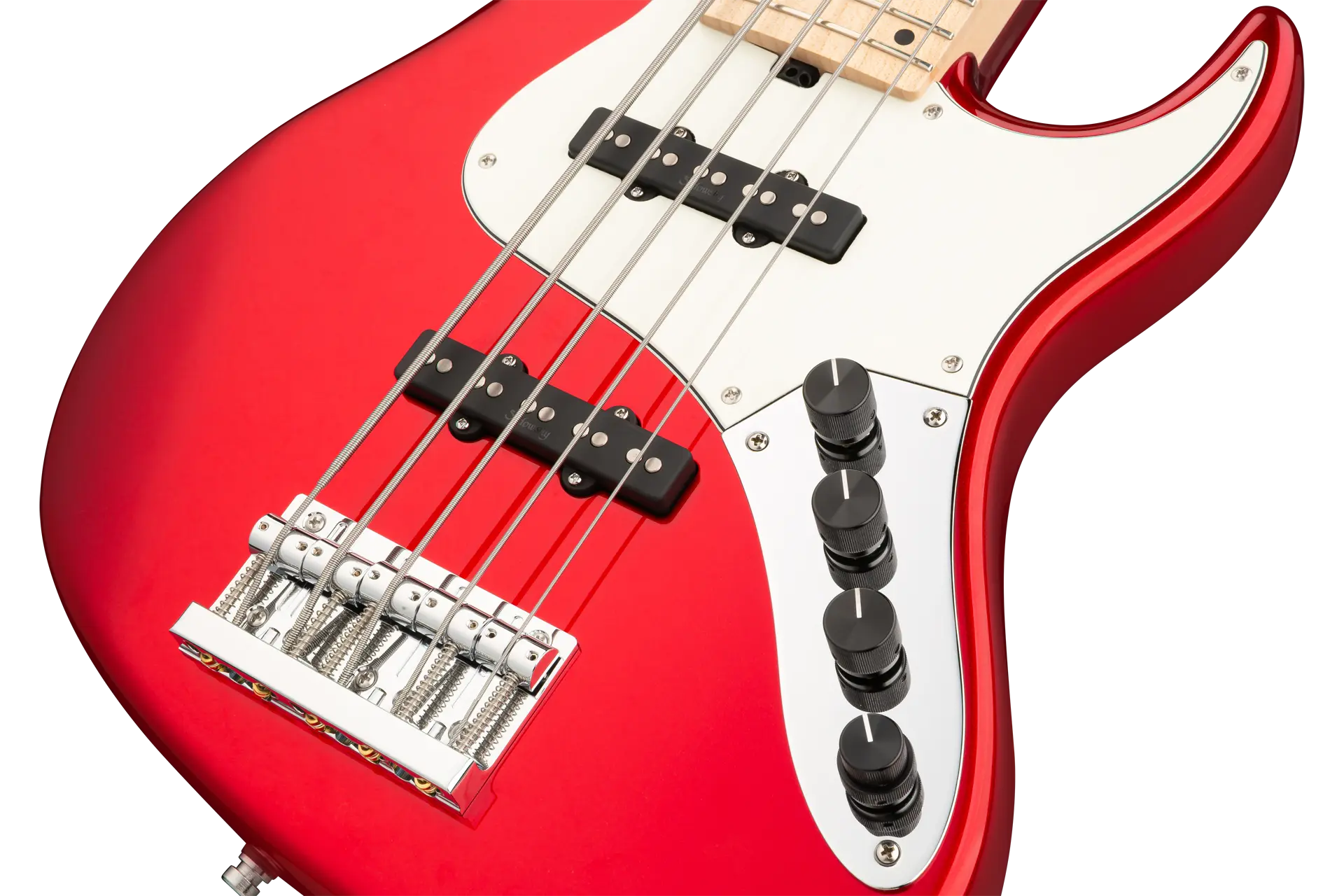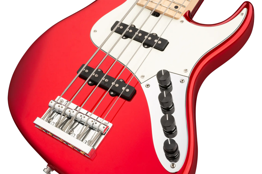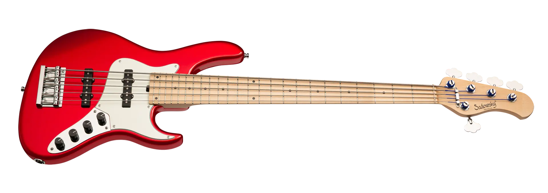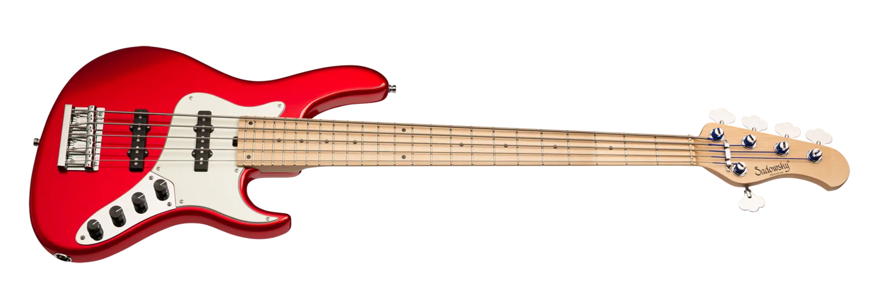 The Sadowsky MetroLine 24-Fret Vintage J/J Bass pays tribute to Roger Sadowsky’s ability to greatly improve an already successful bass design via a number of detailed changes resulting in that special Sadowsky bass tone: Never harsh or shrill sounding, with strong, powerful but never muddy bass. Present, but not too aggressive mids, and a sweet and airy treble. This 5-string bass features a sleek, undersized chambered J-Style body made of American Swamp Ash that is finished in a Solid Candy Apple Red Metallic High Polish finish. It is fitted with Sadowsky J-Style pickups and active electronics with true bypass, Vintage Tone Control and treble / bass boost. The American Maple neck has an American Maple fretboard with 24 nickel silver frets. Hardware includes ultra-light Sadowsky tuners and the special Sadowsky Quick String Release bridge. Made exclusively in Germany, a Sadowsky MetroLine 24-Fret Vintage J/J Bass will never weigh more than 8.9 lbs / 4.0 kg. It’s an excellent choice for bass players who are looking for a lightweight instrument with a modern bass sound.