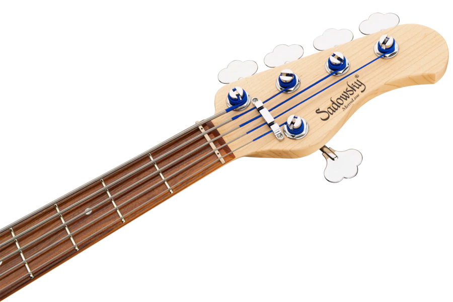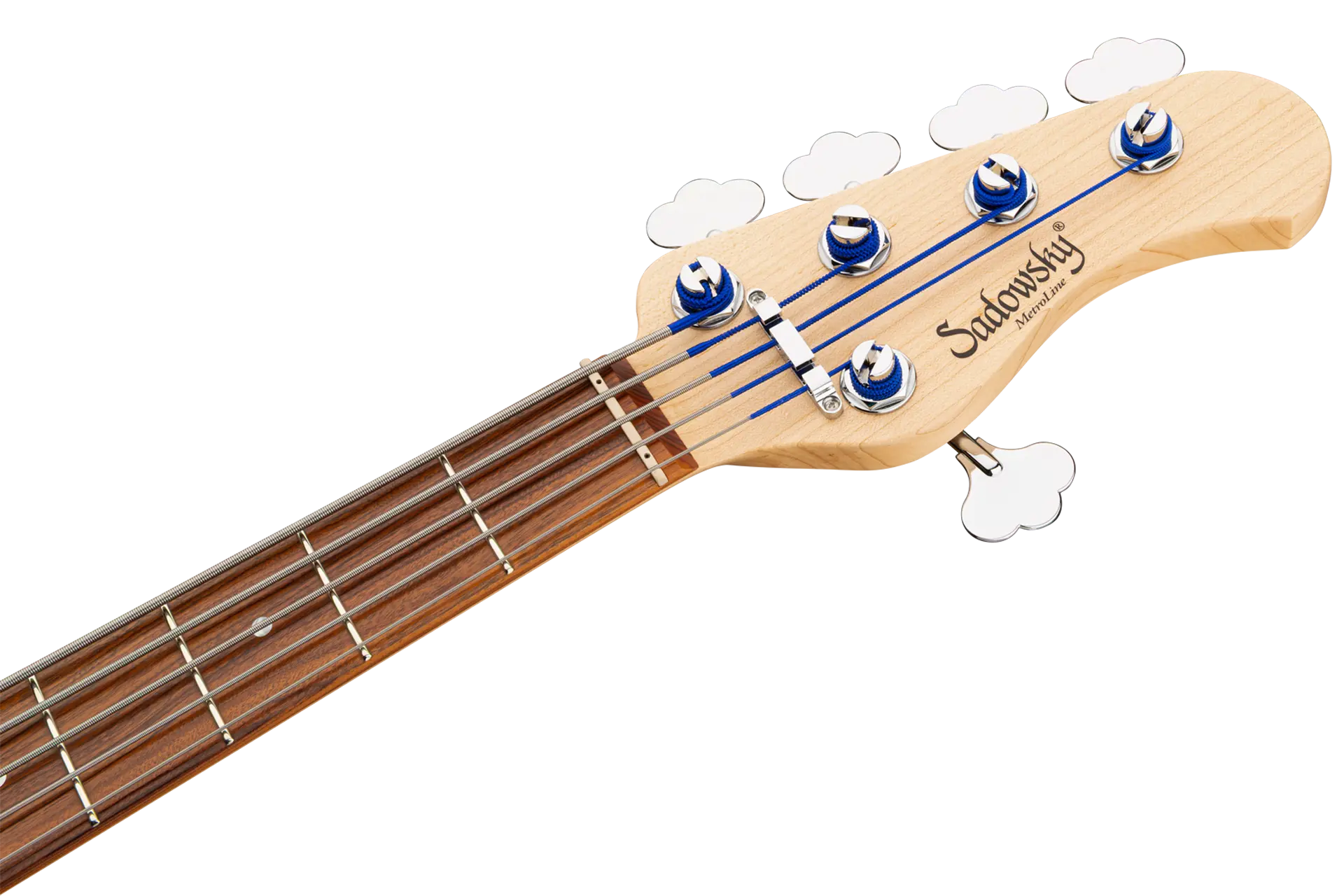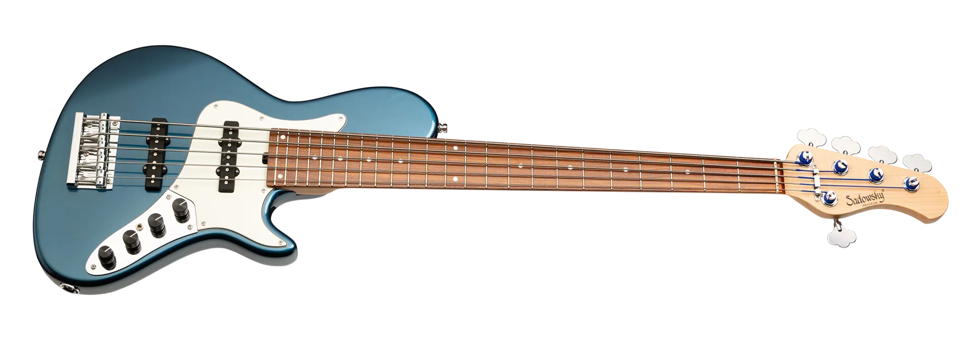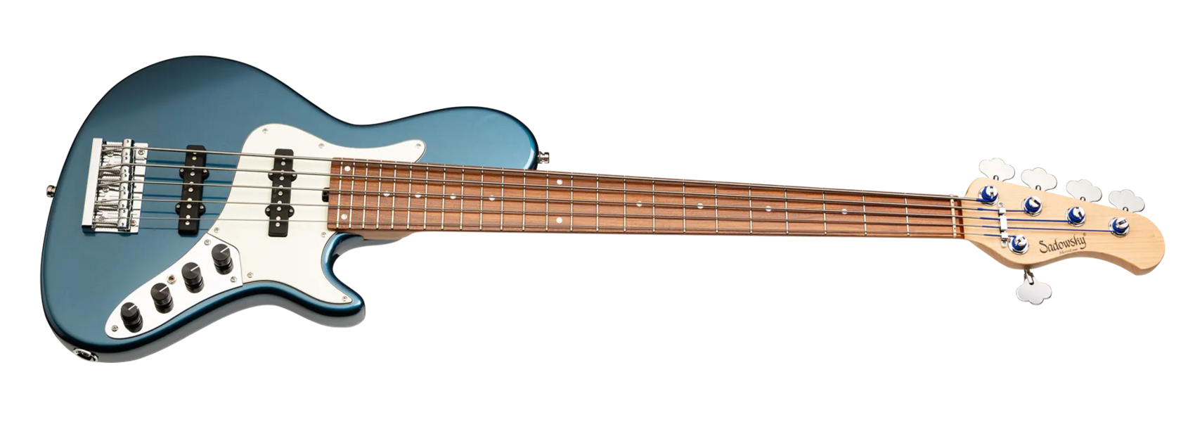 The Sadowsky MetroLine 24-Fret Vintage Single Cut 5-string bass features a sleek, undersized single-cut style body made of chambered American Red Alder with a Solid Dark Lake Placid Blue Metallic High Polish finish. The neck is made of American Maple and features a Morado (Pau Ferro) fingerboard. Special features on this bass include Sadowsky J-Style pickups as well as Roger's famous electronics featuring a preamp with switchable mid-boost and trim pot (choice of 500 Hz or 800 Hz, wide or narrow bandwidth) Vintage Tone Control and preamp bypass. Controls include Volume, Balance, VTC (P/P), Treble and Bass. The hardware includes a Sadowsky Quick String Release Bridge and light open gear Sadowsky tuners. Made exclusively in Germany, a Sadowsky MetroLine 24-Fret Vintage Single Cut bass never weighs more than 8.9 lbs (4.0 kg). It’s a great choice for players who want a lightweight single-cut bass with that famous Sadowsky tone: strong, powerful bass that is never muddy. Mids that are present but not too aggressive and a sweet and airy treble range.